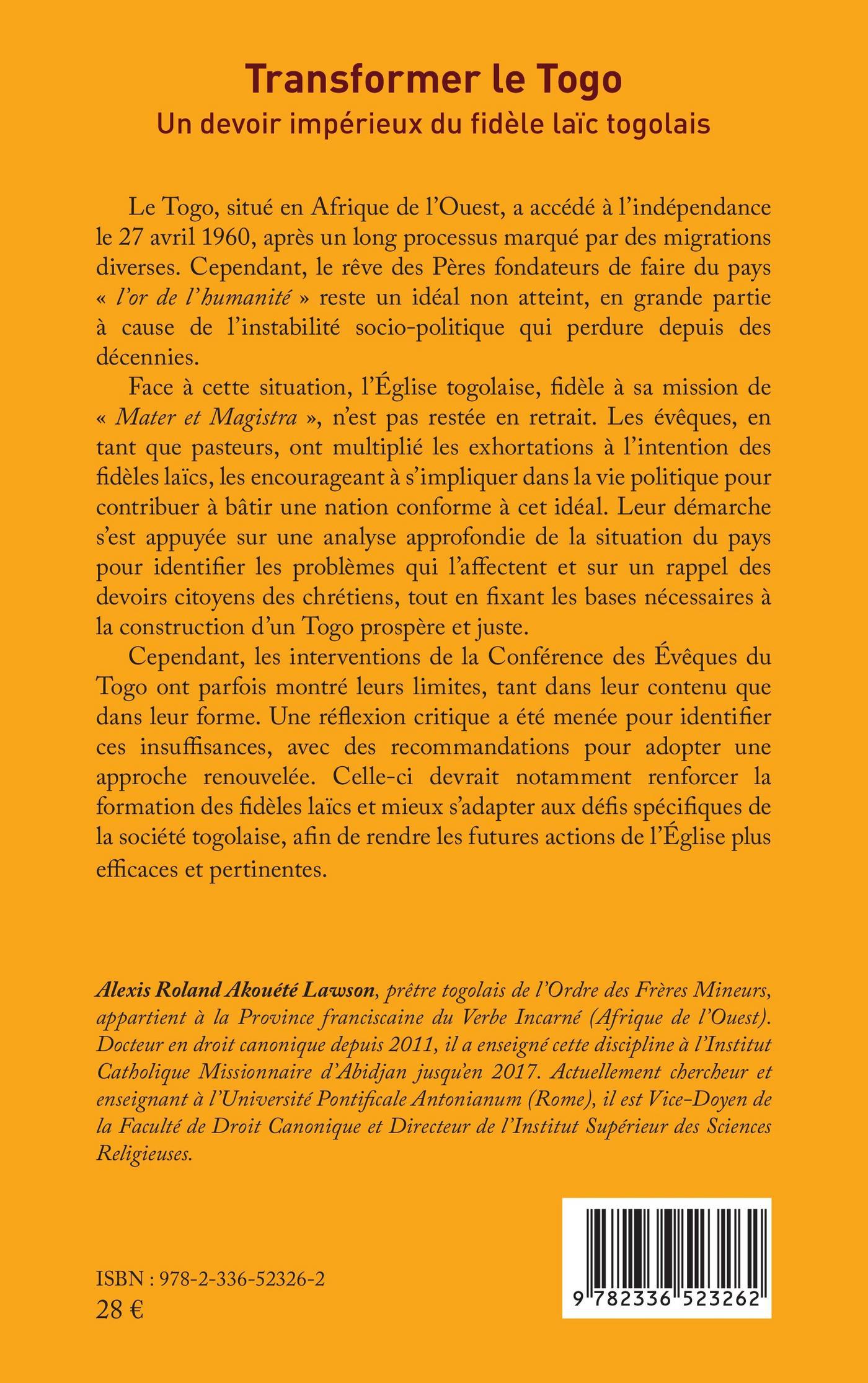 fidèles laïcs, les encourageant à s’impliquer dans la vie politique pour contribuer à bâtir une nation conforme à cet idéal. Leur démarche s’est appuyée sur une analyse approfondie de la situation du pays pour identifier les problèmes qui l’affectent et sur un rappel des devoirs citoyens des chrétiens, tout en fixant les bases nécessaires à la construction d’un Togo prospère et juste.