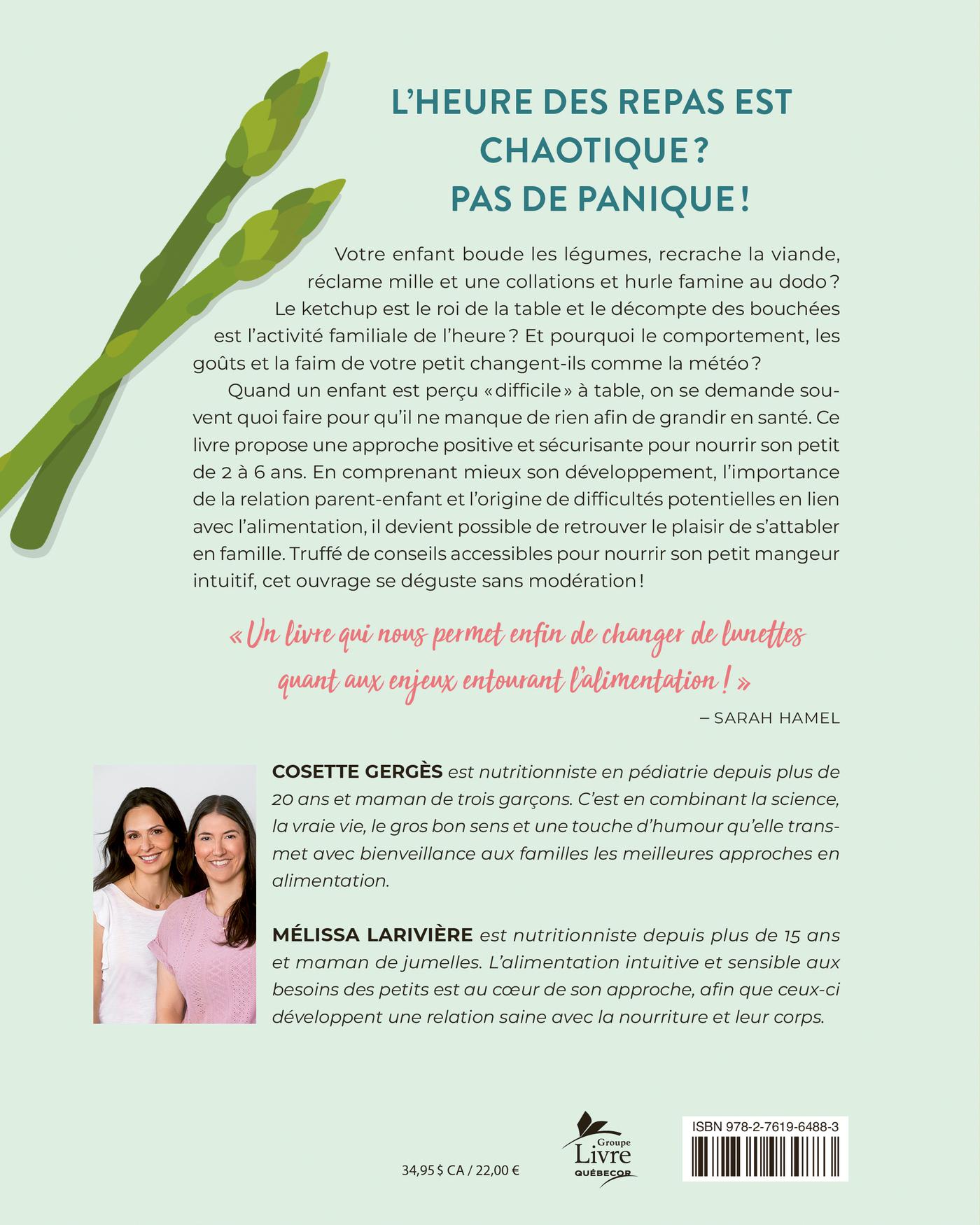 Quand un enfant est perçu « difficile » à table, on se demande souvent quoi faire pour qu'il ne manque de rien afin de grandir en santé. Ce livre propose une approche positive et sécurisante pour nourrir son petit de 2 à 6 ans. En comprenant mieux son développement, l'importance de la relation parent-enfant et l'origine de difficultés potentielles en lien avec l'alimentation, il devient possible de retrouver le plaisir de s'attabler en famille. Truffé de conseils accessibles pour nourrir son petit mangeur intuitif, cet ouvrage se déguste sans modération !