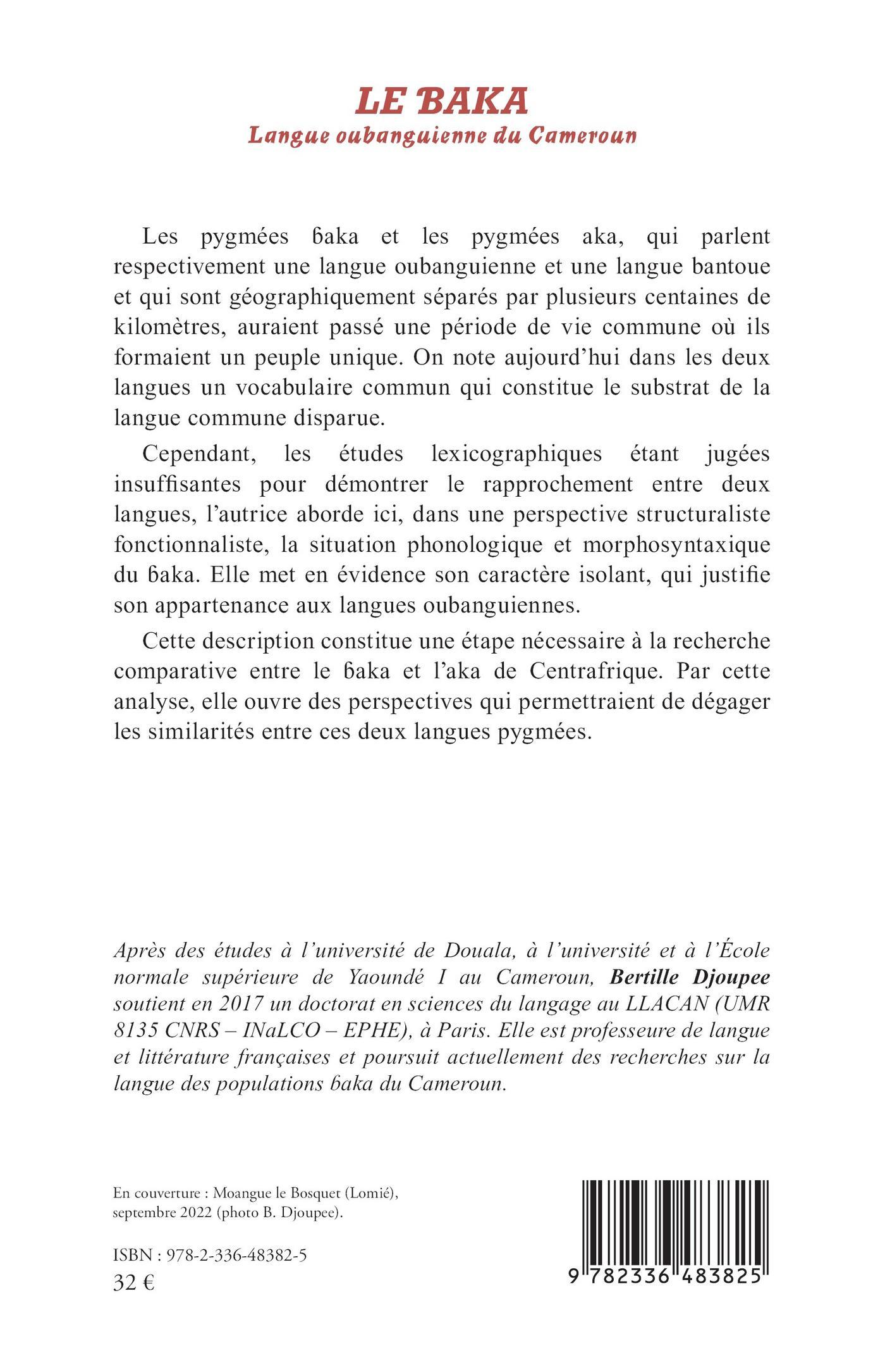 Cependant, les études lexicographiques étant jugées insuffisantes pour démontrer le rapprochement entre deux langues, l’autrice aborde ici, dans une perspective structuraliste fonctionnaliste, la situation phonologique et morphosyntaxique du ɓaka. Elle met en évidence son caractère isolant, qui justifie son appartenance aux langues oubanguiennes.