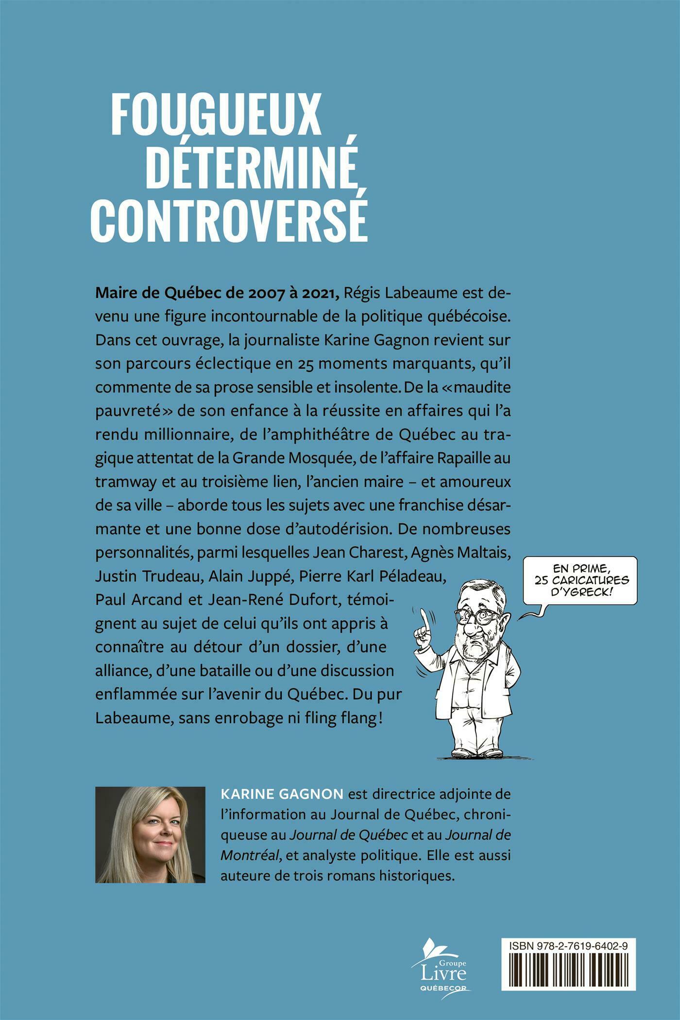 Maire de Québec de 2007 à 2021, Régis Labeaume est devenu une figure incontournable de la politique québécoise. Dans cet ouvrage, la journaliste Karine Gagnon revient sur son parcours éclectique en 25 moments marquants, qu'il commente de sa prose sensible et insolente.