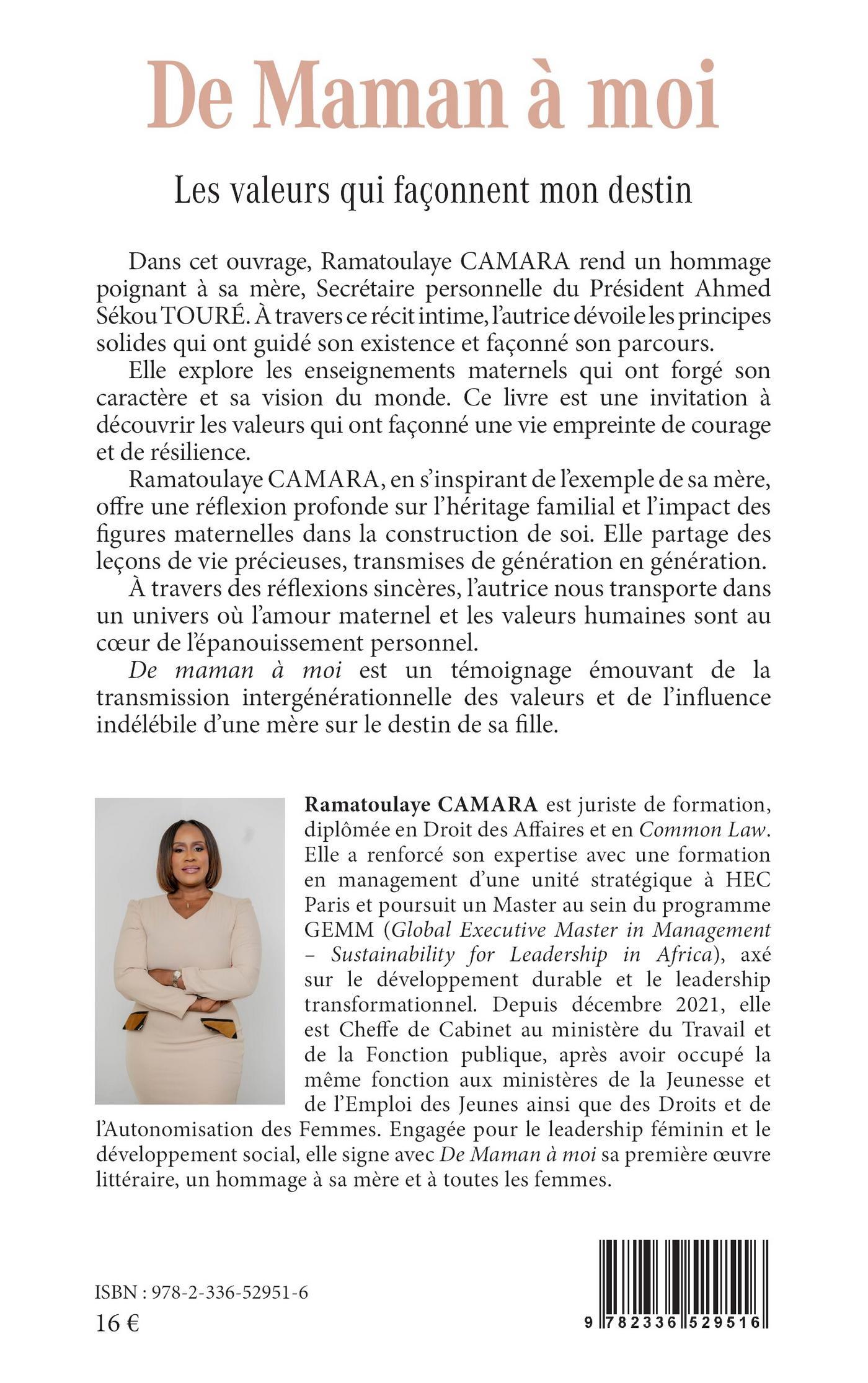 Dans cet ouvrage, Ramatoulaye Camara rend un hommage poignant à sa mère, Secrétaire personnelle du Président Ahmed Sékou Touré. À travers ce récit intime, l’autrice dévoile les principes solides qui ont guidé son existence et façonné son parcours.