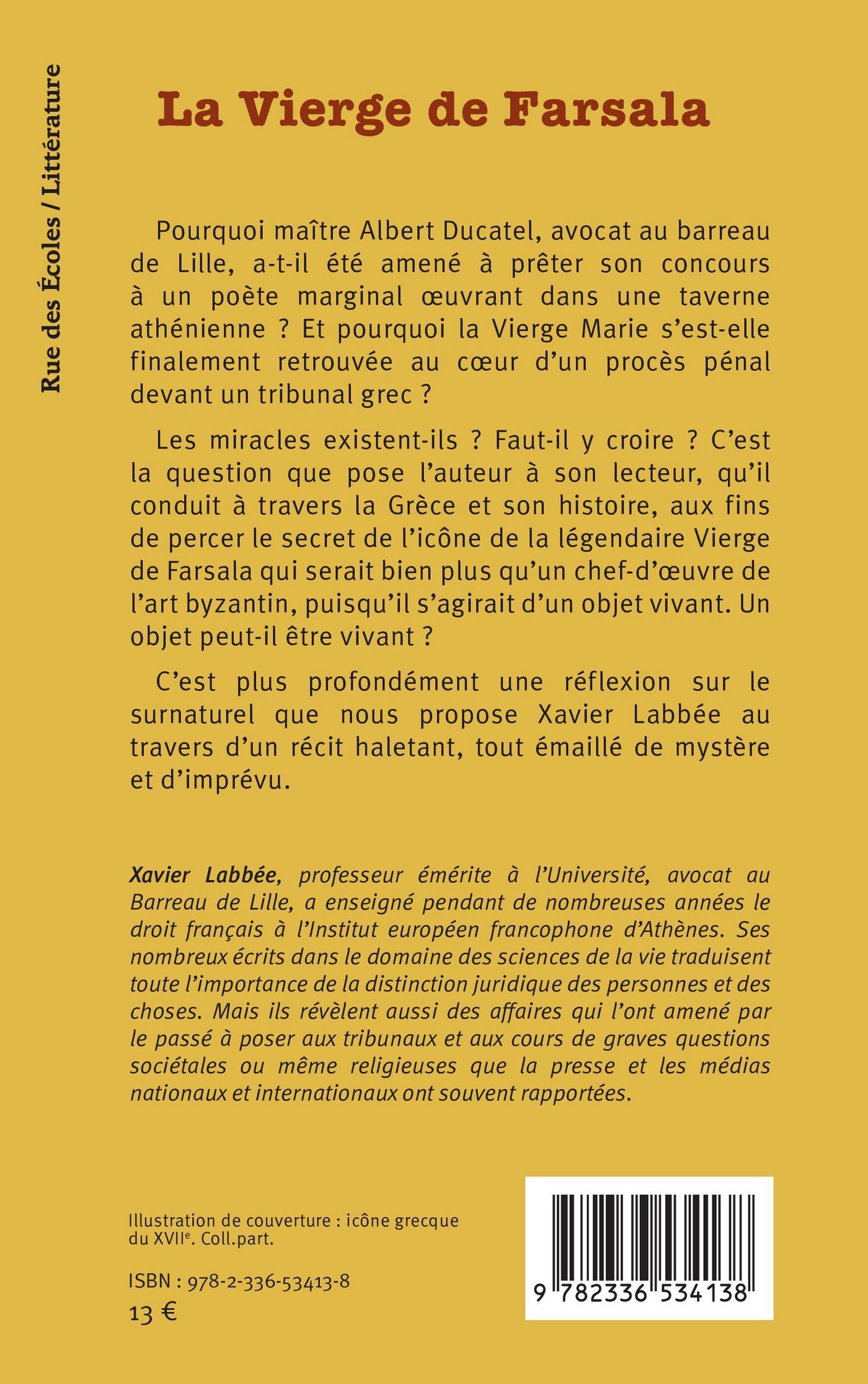 Pourquoi maître Albert Ducatel, avocat au barreau de Lille, a-t-il été amené à prêter son concours à un poète marginal œuvrant dans une taverne athénienne ? Et pourquoi la Vierge Marie s’est-elle finalement retrouvée au cœur d’un procès pénal devant un tribunal grec ?