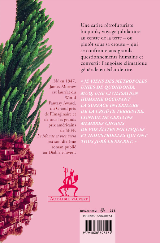 Une satire rétrofuturiste biopunk, voyage jubilatoire au centre de la terre ¿ ou plutôt sous sa croute ¿ qui se confronte aux grands questionnements humains et convertit l'angoisse climatique générale en éclat de rire.Je viens des Métropoles Unies de Quondonia, MUQ, une civilisation humaine occupant la surface intérieure de la croûte terrestre, connue de certains membres choisis de vos élites politiques et industrielles qui ont tous juré le secret. Né en 1947, James Morrow est lauréat du World Fantasy Award, du Grand prix de l'Imaginaire et de tous les grands prix américains de SFFF. Le Monde et vice versa est son dixième roman publié au Diable vauvert.