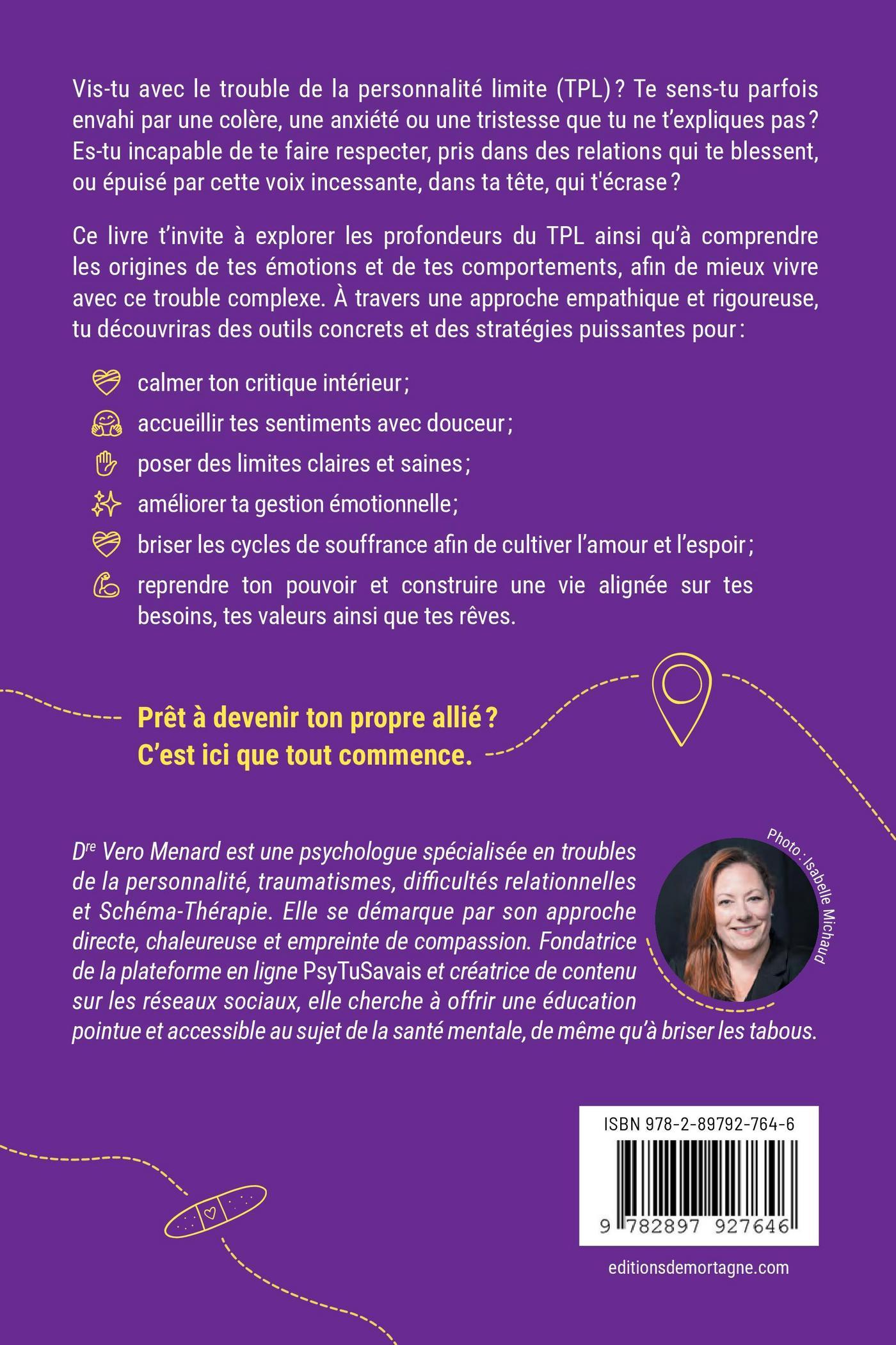 Vis-tu avec le trouble de la personnalité limite (TPL) ? Te sens-tu parfois envahi par une colère, une anxiété ou une tristesse que tu ne t’expliques pas ? Es-tu incapable de te faire respecter, pris dans des relations qui te blessent, ou épuisé par cette voix incessante, dans ta tête, qui t'écrase ?Ce livre t’invite à explorer les profondeurs du TPL ainsi qu’à comprendre les origines de tes émotions et de tes comportements, afin de mieux vivre avec ce trouble complexe. À travers une approche empathique et rigoureuse, tu découvriras des outils concrets et des stratégies puissantes pour :-calmer ton critique intérieur ;-accueillir tes sentiments avec douceur ;-poser des limites claires et saines ;-améliorer ta gestion émotionnelle ;-briser les cycles de souffrance afin de cultiver l’amour et l’espoir ;-reprendre ton pouvoir et construire une vie alignée sur tes besoins, tes valeurs ainsi que tes rêves.Prêt à devenir ton propre allié ? C’est ici que tout commence.