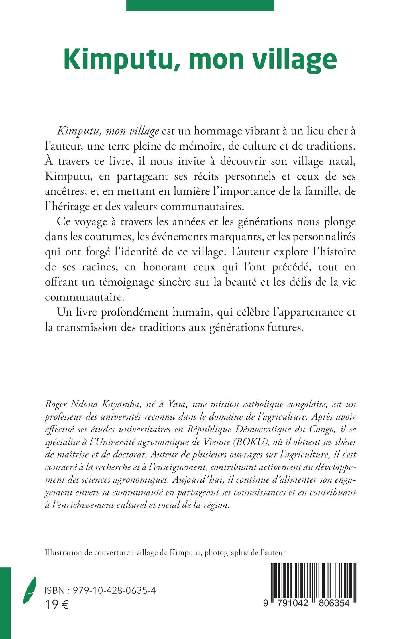 Kimputu, mon village est un hommage vibrant à un lieu cher à l’auteur, une terre pleine de mémoire, de culture et de traditions. À travers ce livre, il nous invite à découvrir son village natal, Kimputu, en partageant ses récits personnels et ceux de ses ancêtres, et en mettant en lumière l’importance de la famille, de l’héritage et des valeurs communautaires.