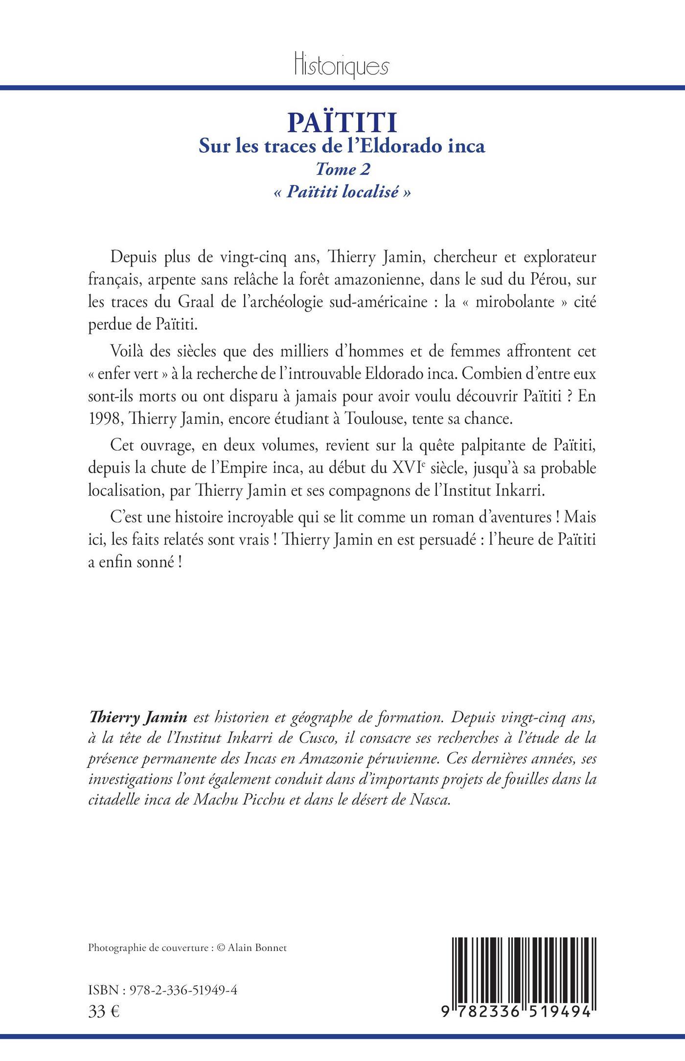 Cet ouvrage, en deux volumes, revient sur la quête palpitante de Païtiti, depuis la chute de l’Empire inca, au début du XVIe siècle, jusqu’à sa probable localisation, par Thierry Jamin et ses compagnons de l’Institut Inkarri.