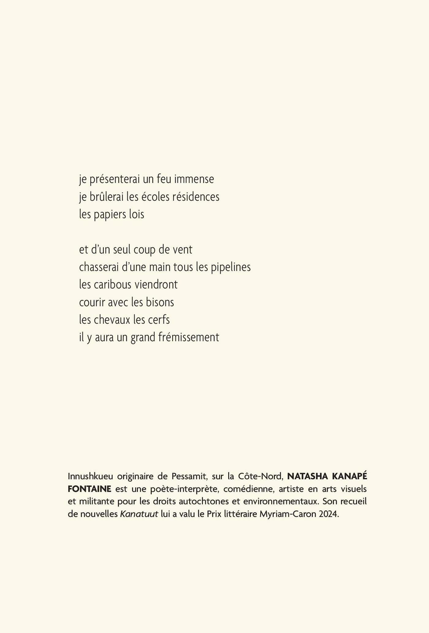 Guy Sioui Durand, Hélène Matte, Natasha Kanapé Fontaine, Mélissa Simard, Jean-Philippe Uzel, Marie-Charlotte Franco, Louise Vigneault, Pierre Bastien, Sophie Guignard, Chloë Charce, Claudia Néron, Olivier Bergeron-Martel, Vincent Napish, Sylvie Basile, Rita Mestokosho, Jonathan Lamy, Naomi fontaine, Virginia Pesemapeo Bordeleau, Marie-Andrée Gill, Véronique Hébert, Yves Sioui Durand, Nathalie Côté, Anne Pilorget, Frédérique Hamelin, Michaël La Chance