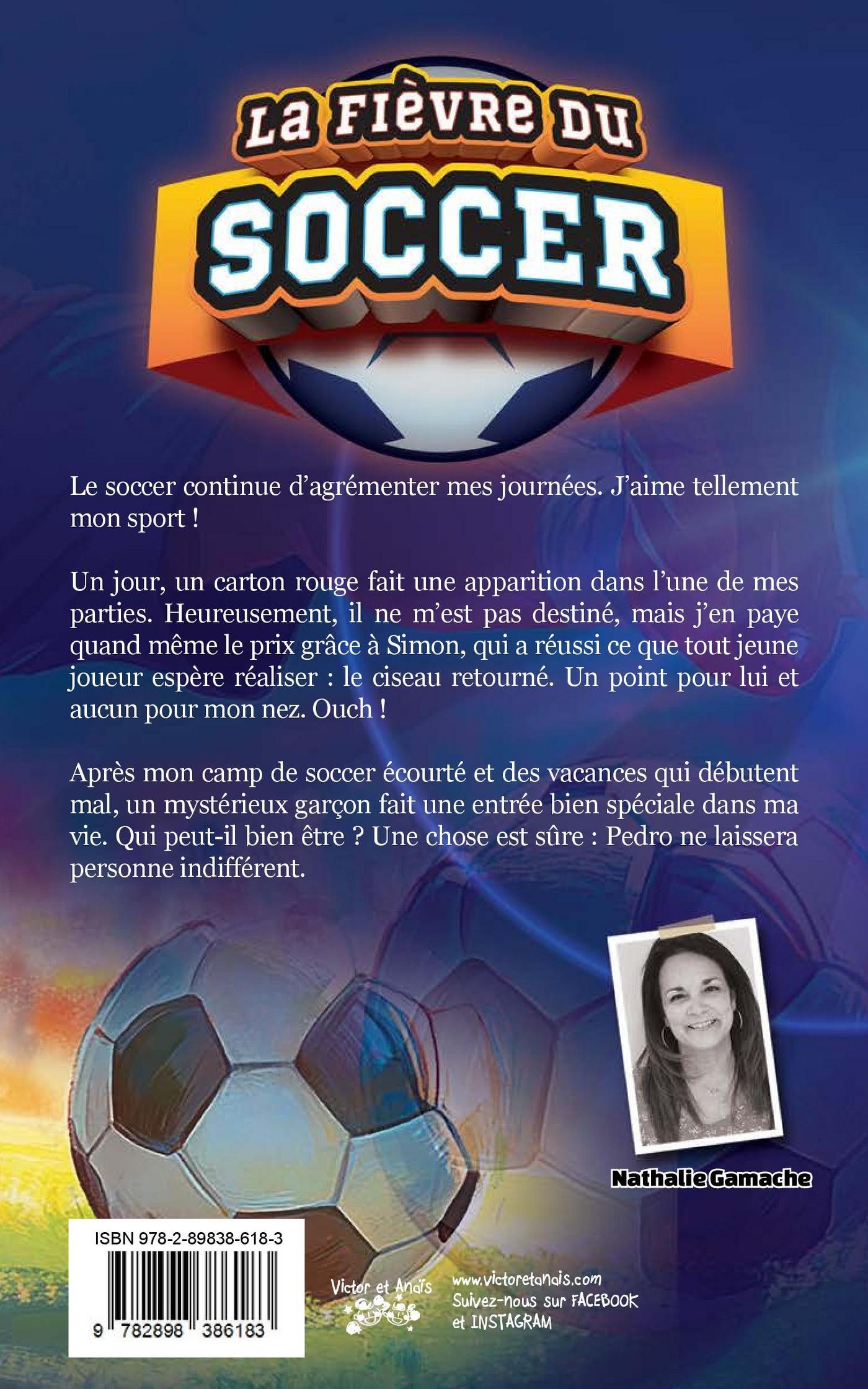 Le soccer continue d’agrémenter mes journées. J’aime tellement mon sport ! Un jour, un carton rouge fait une apparition dans l’une de mes parties. Heureusement, il ne m’est pas destiné, mais j’en paye quand même le prix grâce à Simon, qui a réussi ce que tout jeune joueur espère réaliser : le ciseau retourné. Un point pour lui et aucun pour mon nez. Ouch ! Après mon camp de soccer écourté et des vacances qui débutent mal, un mystérieux garçon fait une entrée bien spéciale dans ma vie. Qui peut-il bien être ? Une chose est sûre : Pedro ne laissera personne indifférent.