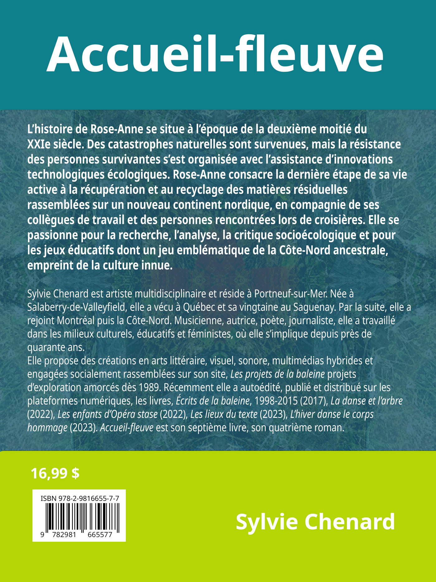 L’histoire de Rose-Anne se situe à l’époque de la deuxième moitié du XXIe siècle. Des catastrophes naturelles sont survenues, mais la résistance des personnes survivantes s’est organisée avec l’assistance d’innovations technologiques écologiques. Rose-Anne consacre la dernière étape de sa vie active à la récupération et au recyclage des matières résiduelles rassemblées sur un nouveau continent nordique, en compagnie de ses collègues de travail et des personnes rencontrées lors de croisières. Elle se passionne pour la recherche, l’analyse, la critique socioécologique et pour les jeux éducatifs dont un jeu emblématique de la Côte-Nord ancestrale, empreint de la culture innue.