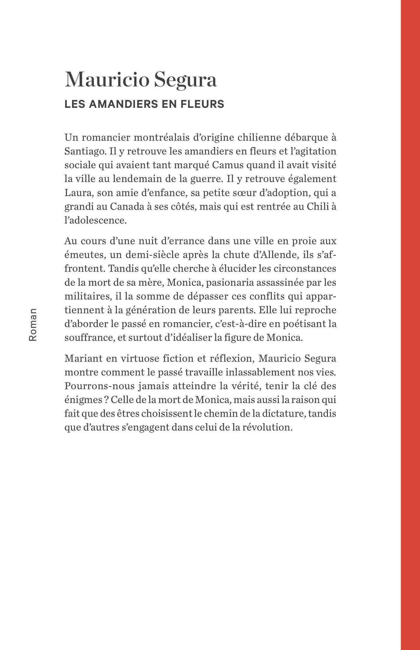 Un romancier et essayiste montréalais, chilien d’origine, débarque à Santiago pour participer à un colloque universitaire sur Camus. Il y retrouve Laura, son amie d’enfance, sa petite sœur d’adoption, qui a grandi à Montréal à ses côtés, mais qui est rentrée au Chili à l’adolescence.