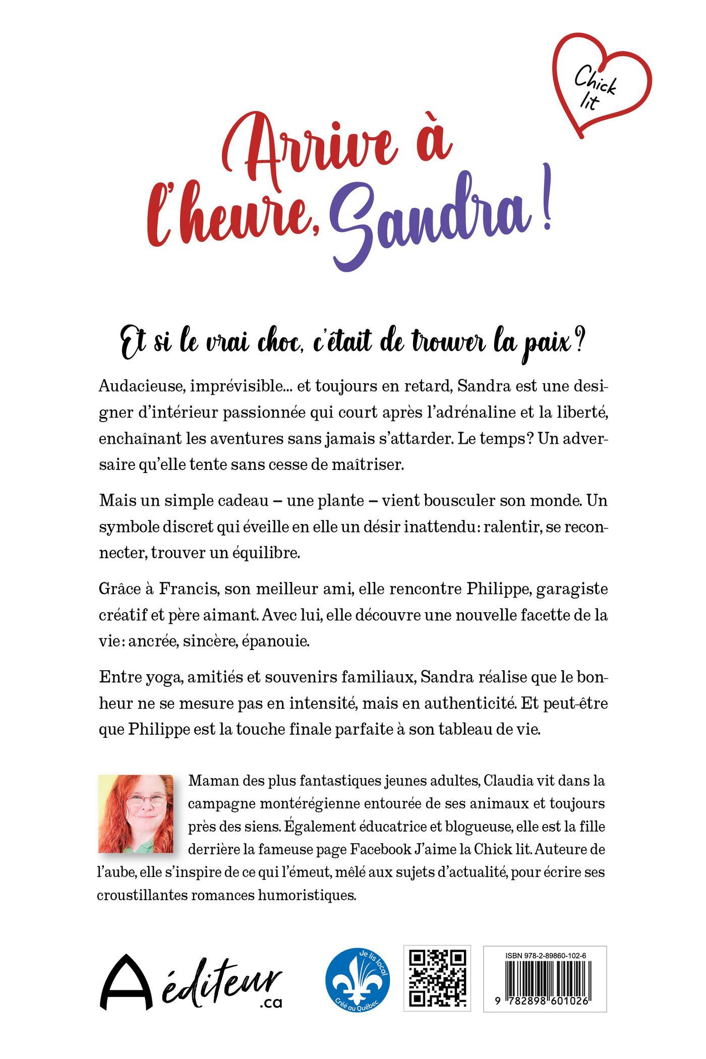Et si le vrai choc, c’était de trouver la paix ? Audacieuse, imprévisible… et toujours en retard, Sandra est une designer d’intérieur passionnée qui court après l’adrénaline et la liberté, enchaînant les aventures sans jamais s’attarder. Le temps ? Un adversaire qu’elle tente sans cesse de maîtriser. Mais un simple cadeau – une plante – vient bousculer son monde. Un symbole discret qui éveille en elle un désir inattendu : ralentir, se reconnecter, trouver un équilibre. Grâce à Francis, son meilleur ami, elle rencontre Philippe, garagiste créatif et père aimant. Avec lui, elle découvre une nouvelle facette de la vie : ancrée, sincère, épanouie.