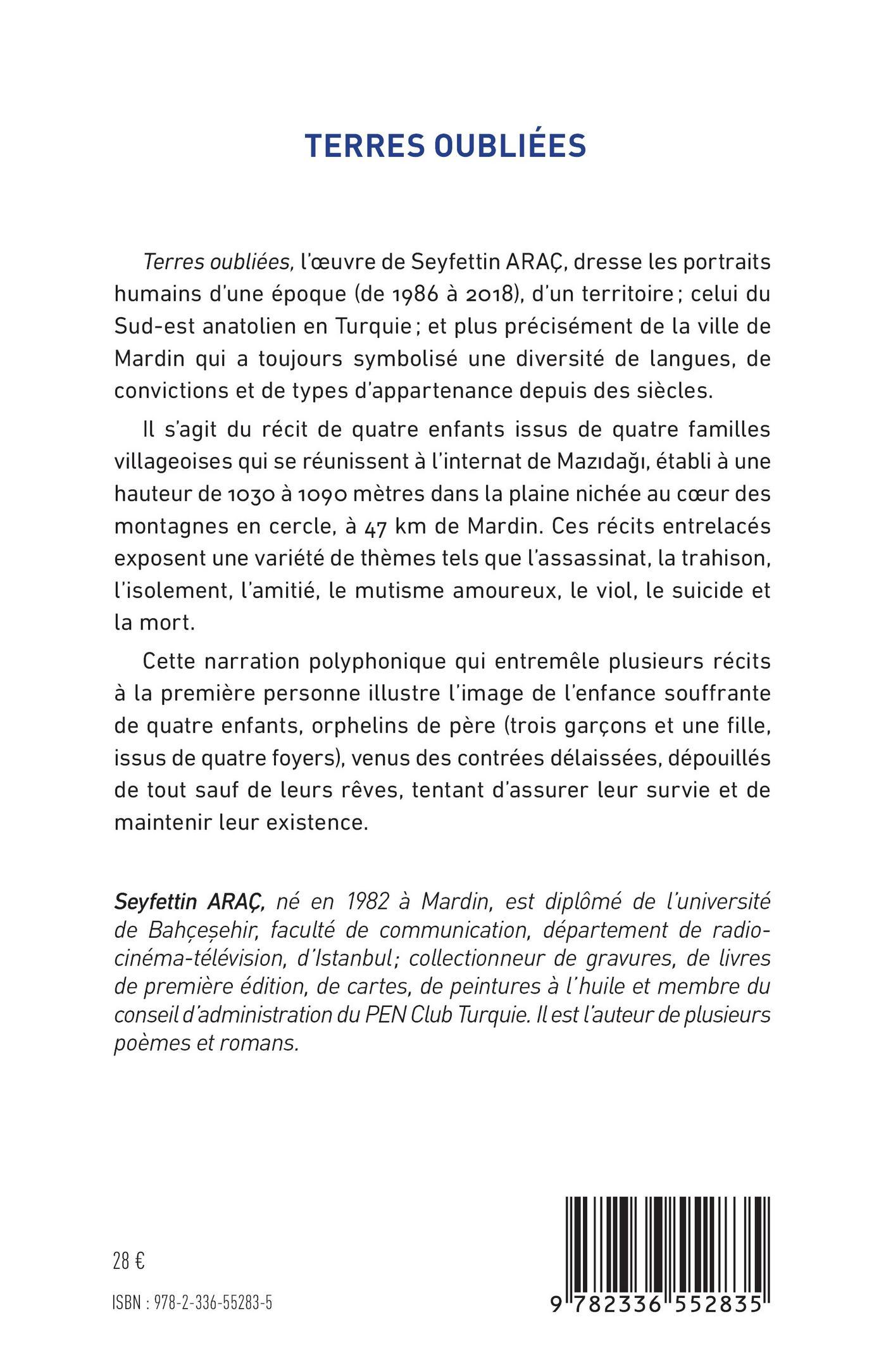 Terres oubliées, l’œuvre de Seyfettin Araç, dresse les portraits humains d’une époque (de 1986 à 2018), d’un territoire ; celui du Sud-est anatolien en Turquie ; et plus précisément de la ville de Mardin qui a toujours symbolisé une diversité de langues, de convictions et de types d’appartenance depuis des siècles.