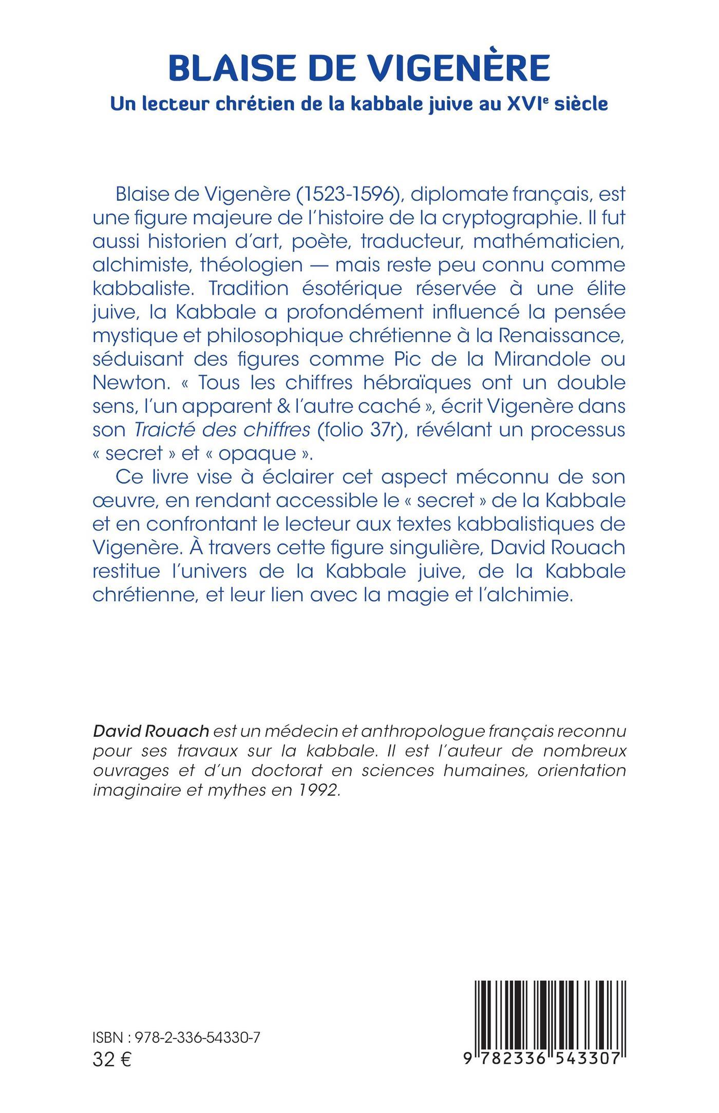 Ce livre vise à éclairer cet aspect méconnu de son œuvre, en rendant accessible le « secret » de la Kabbale et en confrontant le lecteur aux textes kabbalistiques de Vigenère. À travers cette figure singulière, David Rouach restitue l’univers de la Kabbale juive, de la Kabbale chrétienne, et leur lien avec la magie et l’alchimie.