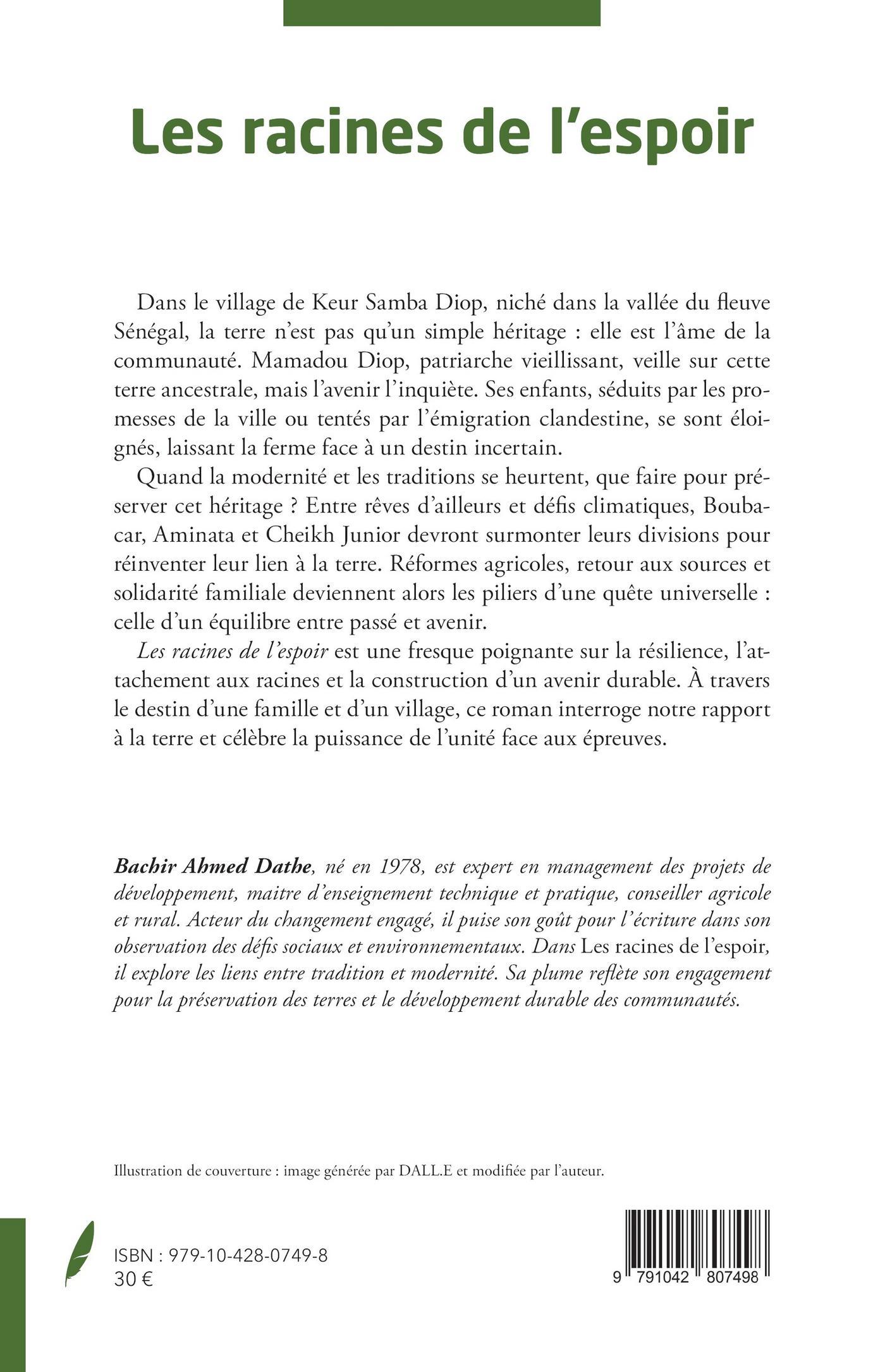 Les racines de l’espoir est une fresque poignante sur la résilience, l’attachement aux racines et la construction d’un avenir durable. À travers le destin d’une famille et d’un village, ce roman interroge notre rapport à la terre et célèbre la puissance de l’unité face aux épreuves.
