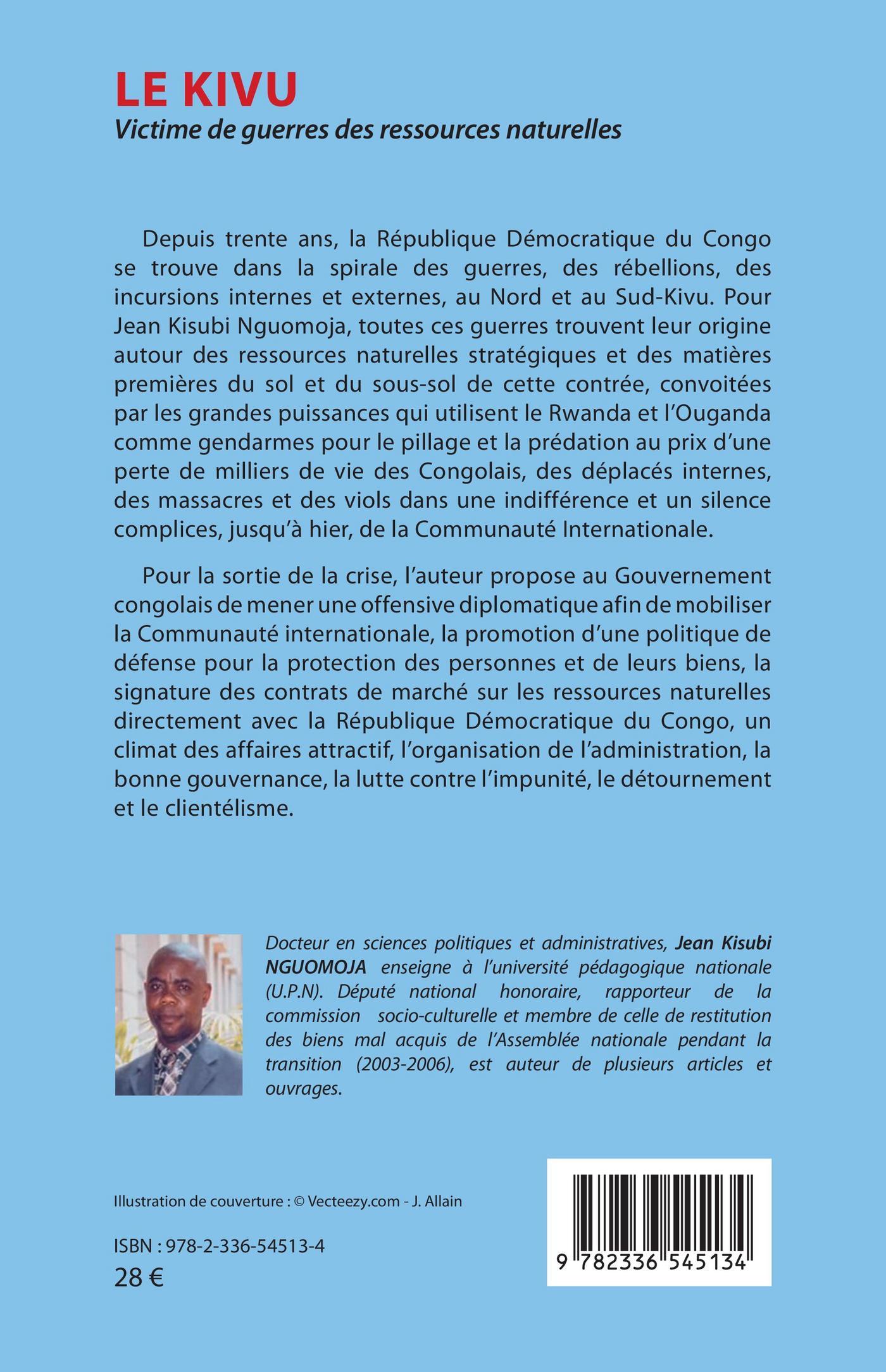 Depuis trente ans, la République Démocratique du Congo se trouve dans la spirale des guerres, des rébellions, des incursions internes et externes, au Nord et au Sud-Kivu. Pour Jean Kisubi Nguomoja, toutes ces guerres trouvent leur origine autour des ressources naturelles stratégiques et des matières premières du sol et du sous-sol de cette contrée, convoitées par les grandes puissances qui utilisent le Rwanda et l’Ouganda comme gendarmes pour le pillage et la prédation au prix d’une perte de milliers de vie des Congolais, des déplacés internes, des massacres et des viols dans une indifférence et un silence complices, jusqu’à hier, de la Communauté Internationale.
