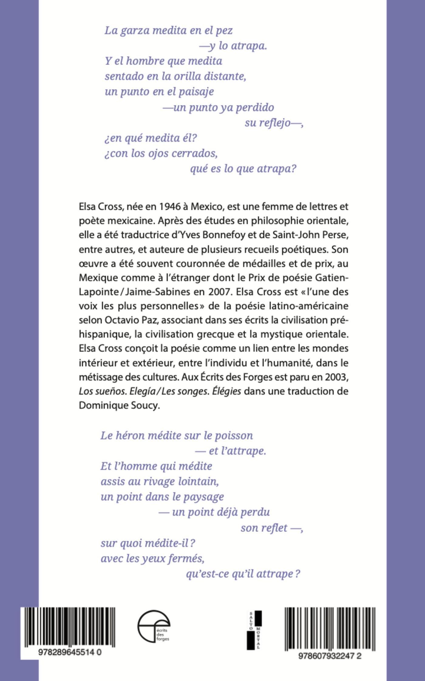 Les Écrits des Forges, en collaboration avec l’éditeur mexicain Salto Mortal, présentent aujourd’hui Inflexions de la lumière /Inflexiones de la luz, une édition bilingue (français, espagnol) du recueil de la poète mexicaine Elsa Cross. Cette œuvre a été traduite par Ana Cristina Zúñiga.