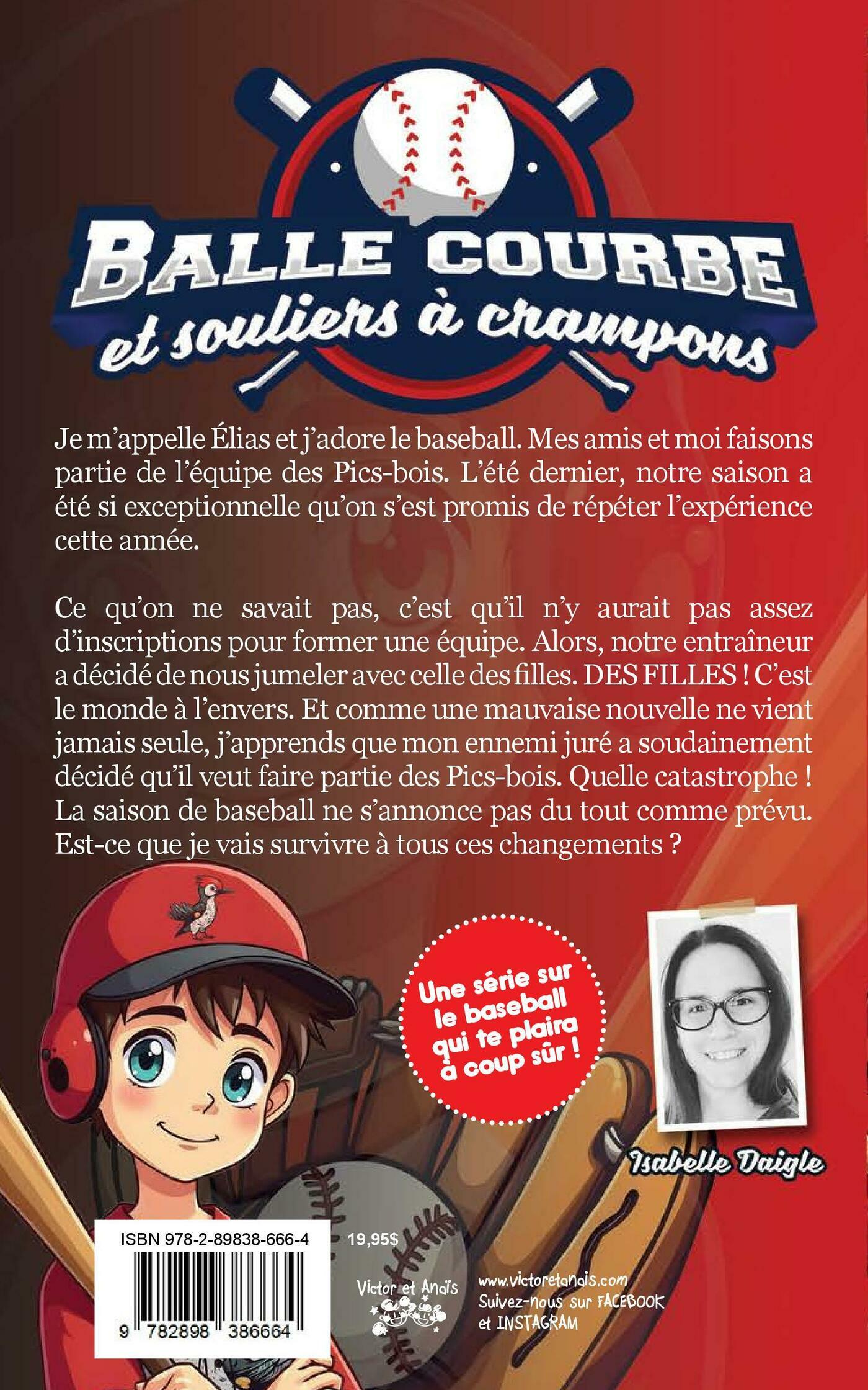 Je m’appelle Élias et j’adore le baseball. Mes amis et moi faisons partie de l’équipe des Pics-bois. L’été dernier, notre saison a été si exceptionnelle qu’on s’est promis de répéter l’expérience cette année. Ce qu’on ne savait pas, c’est qu’il n’y aurait pas assez d’inscriptions pour former une équipe. Alors, notre entraîneur a décidé de nous jumeler avec celle des filles. DES FILLES ! C’est le monde à l’envers. Et comme une mauvaise nouvelle ne vient jamais seule, j’apprends que mon ennemi juré a soudainement décidé qu’il veut faire partie des Pics-bois. Quelle catastrophe ! La saison de baseball ne s’annonce pas du tout comme prévu. Est-ce que je vais survivre à tous ces changements ?