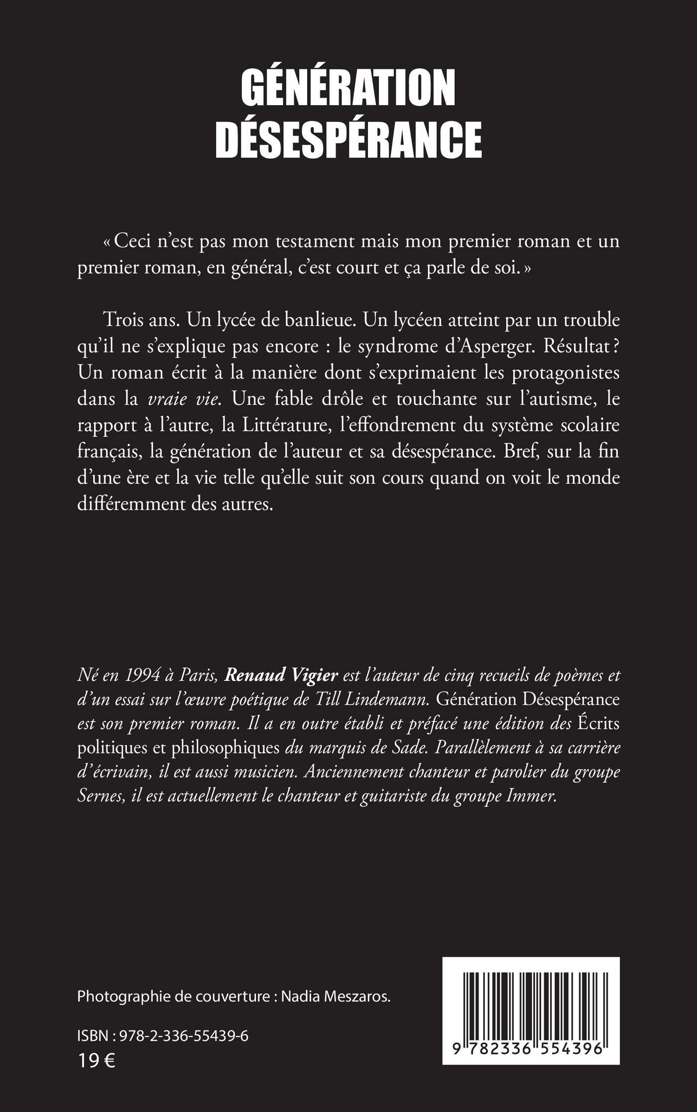 Trois ans. Un lycée de banlieue. Un lycéen atteint par un trouble qu’il ne s’explique pas encore : le syndrome d’Asperger. Résultat ? Un roman écrit à la manière dont s’exprimaient les protagonistes dans la vraie vie. Une fable drôle et touchante sur l’autisme, le rapport à l’autre, la Littérature, l’effondrement du système scolaire français, la génération de l’auteur et sa désespérance. Bref, sur la fin d’une ère et la vie telle qu’elle suit son cours quand on voit le monde différemment des autres.