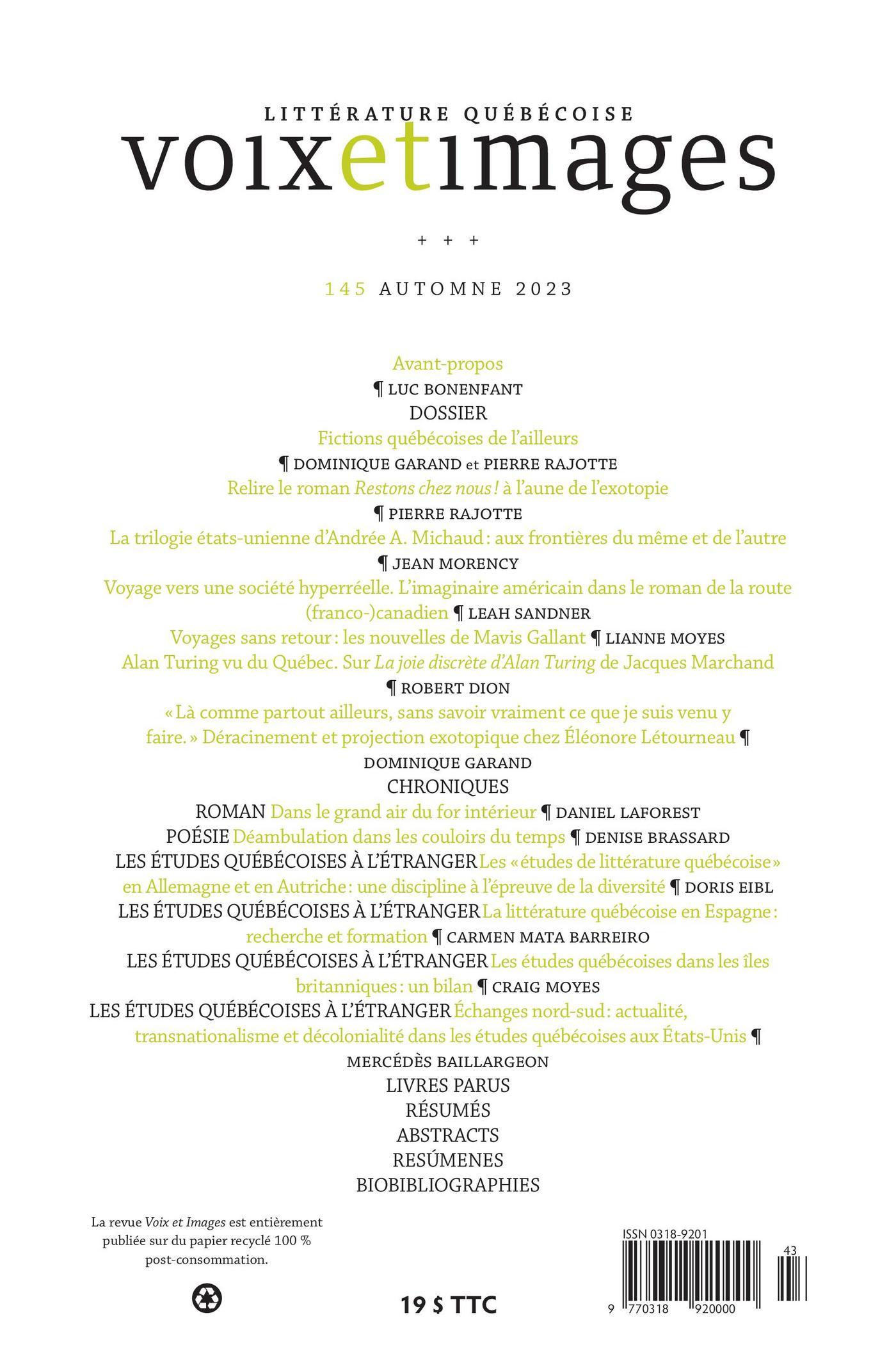 Isabelle Arseneau, Olivier Parenteau, Chantal Ringuet, Christian Vézina, Michaël Blais, Claudia Larochelle, Isabelle Daunais, Éric Bédard, Thomas O. St-Pierre, Lise Fontaine, Frédérique Bernier, Flavia Garcia, Mauricio Segura, David Homel, Félix Morin, Patrice Reytier, Catherine Lemieux, Robert Levesque, Geneviève Letarte, Michel Biron, Marie-Andrée Lamontagne, Alex Gagnon, Georges Privet, Sylvain David, Stanley Péan, Vincent Lambert