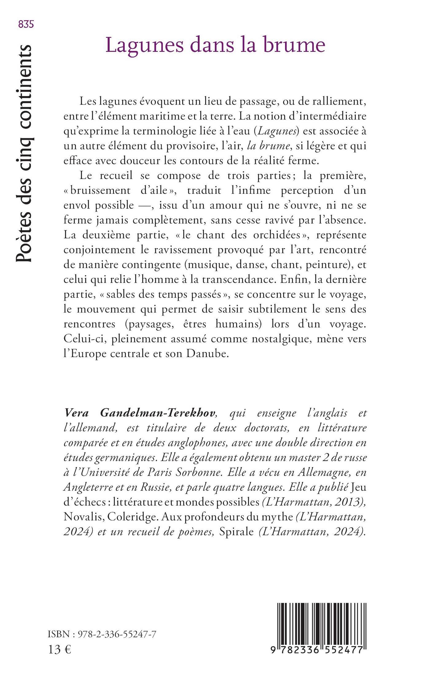 Les lagunes évoquent un lieu de passage, ou de ralliement, entre l’élément maritime et la terre. La notion d’intermédiaire qu’exprime la terminologie liée à l’eau (Lagunes) est associée à un autre élément du provisoire, l’air, la brume, si légère et qui efface avec douceur les contours de la réalité ferme.