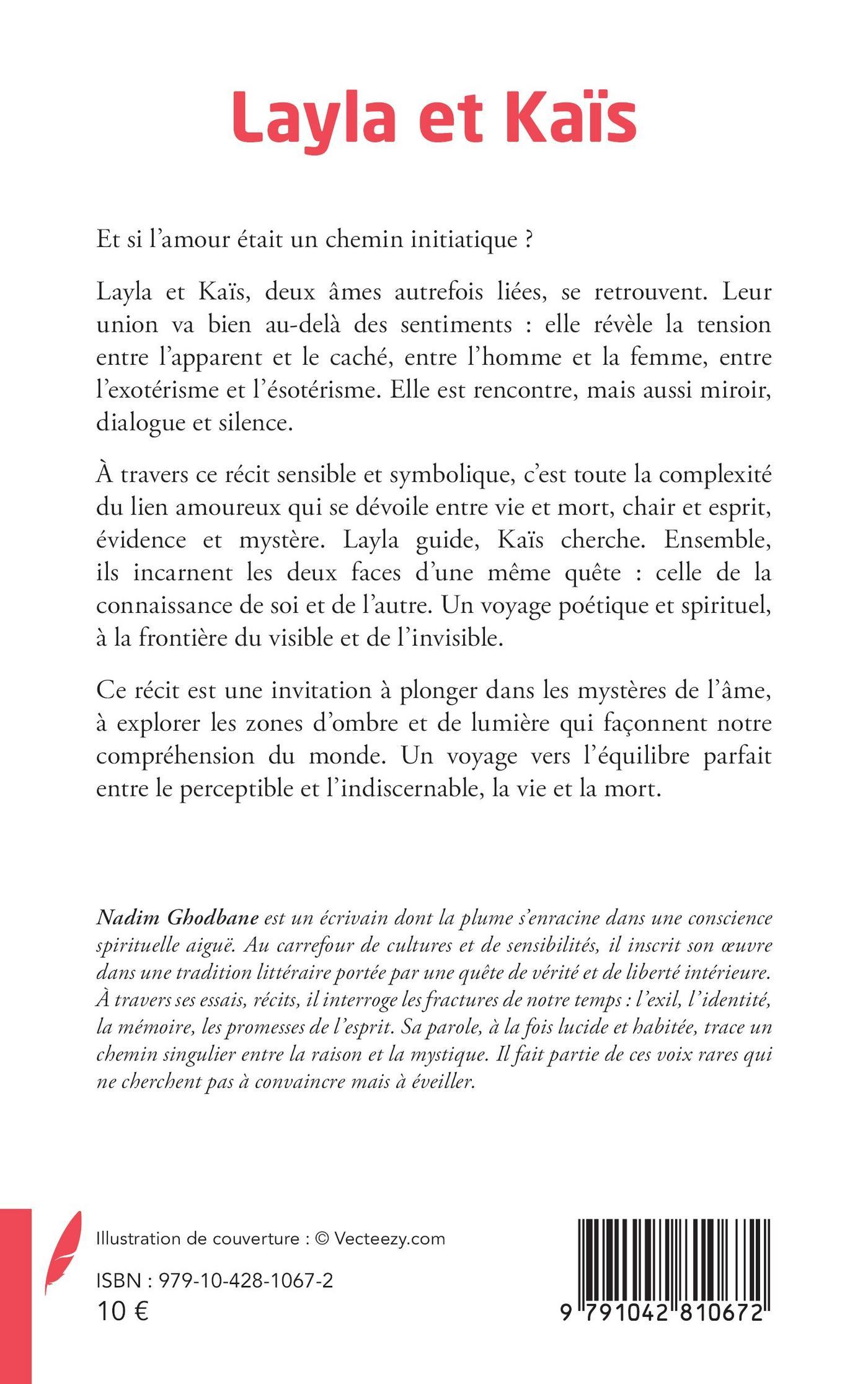 À travers ce récit sensible et symbolique, c’est toute la complexité du lien amoureux qui se dévoile entre vie et mort, chair et esprit, évidence et mystère. Layla guide, Kaïs cherche. Ensemble, ils incarnent les deux faces d’une même quête : celle de la connaissance de soi et de l’autre. Un voyage poétique et spirituel, à la frontière du visible et de l’invisible.