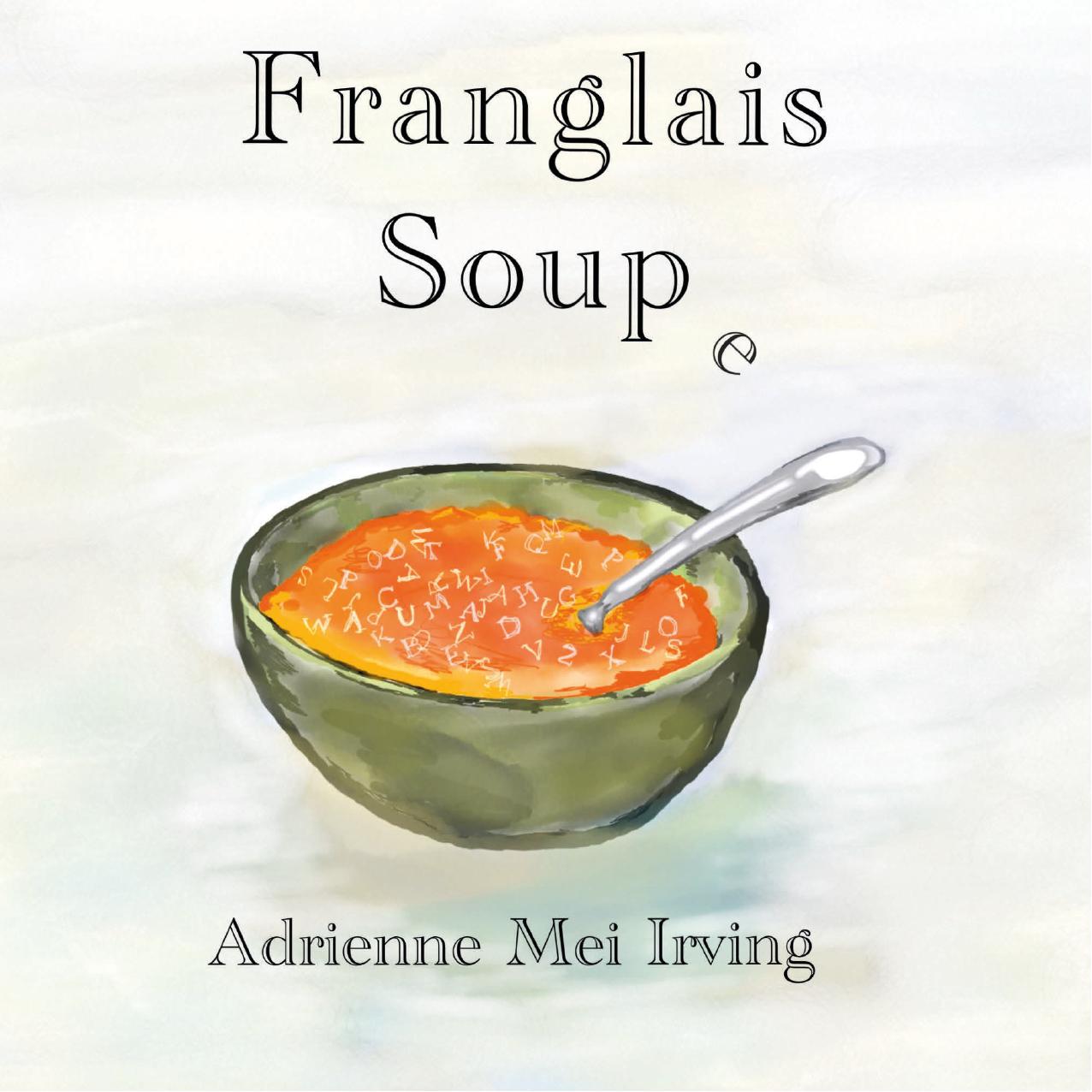 Franglais Soup e, is a gently illustrated rhyming abecedarian book in English and French. By using words that sound the same and have the same meaning, «new» language acquisition seems effortless, and the listener/reader can hear and develop new vocabulary with visual aids or build on an existing core.All of the words selected in the book start with the same letter in both English and French to enforce visual comprehension. The concept is that once the book is finished in one language, the reader may flip it upside down and start again in the alternate language.Parents and teachers will find this book, with its lilting rhymes and gentle illustrations, an engaging book to be read to babies or pre-readers as a way of introducing vocabulary bolstered by illustrations that are clear and pleasant. For the reader (parent), this book presents the opportunity for dual language learning. For the reading child, the book will stimulate mastery of basic words in two languages, supported by rhyming and illustrations