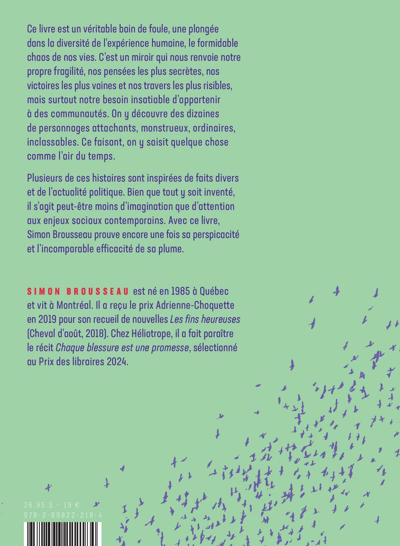 Alain Roy, Julie Mazzieri, Mathieu Bélisle, Julia Chamard-Bergeron, David Dorais, Simon Brousseau, Gabrielle Giasson-Dulude, Antonin Mireault-Plante, Mauricio Segura, Lucie Robert, Patrice Reytier, Marie-Anne Letarte, Heather O'Neill, Vincent Lambert, Geneviève Letarte, Michel Biron, Marie-Andrée Lamontage, Robert Levesque, Georges Privet, Sylvain David, Stanley Péan, Patrick Nicol