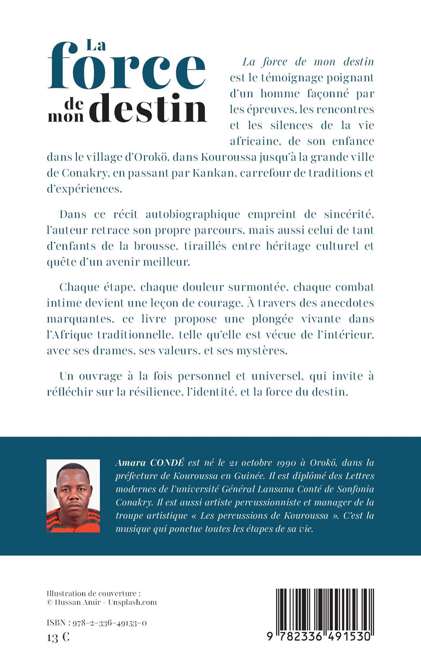 La force de mon destin est le témoignage poignant d’un homme façonné par les épreuves, les rencontres et les silences de la vie africaine, de son enfance dans le village d’Orokö, dans la préfecture de Kouroussa jusqu’à la grande ville de Conakry, en passant par Kankan, carrefour de traditions et d’expériences.