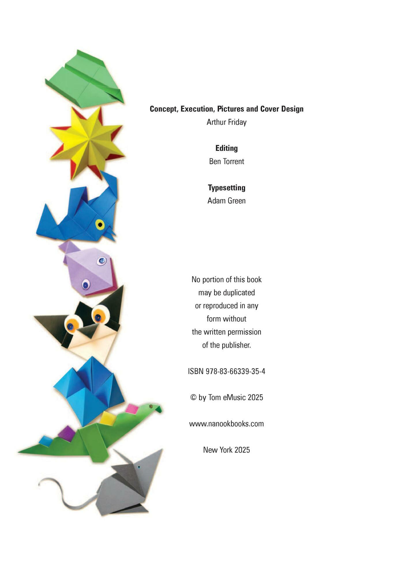 It's amazing what you can create by folding a sheet or two of paper! This book offers 50 creative ideas, all of which are easy to make, even for young children. The different tasks are grouped into themes that are sure to capture children's interest: Animals (make a butterfly that flaps its wings or a frog that jumps at the tip of a finger); Airplanes and Boats (fold paper into different types of crafts that are ready to take off); Toys (make tiny finger puppets or water bombs that swell by themselves); Flowers (make roses to adorn a hat or wreaths to decorate your hair); Decorations (discover the world of paper boxes, always so useful for wrapping gifts or for storage)Each of the 50 creative ideas is presented on two to four pages. Step-by-step instructions are clearly illustrated with photographs and, where necessary, drawings. There is always a picture of the finished product. Origami for Children introduces children to the joy of creating objects with their own hands, simply by folding paper. It is also an opportunity for adults to share a moment of complicity with their children.