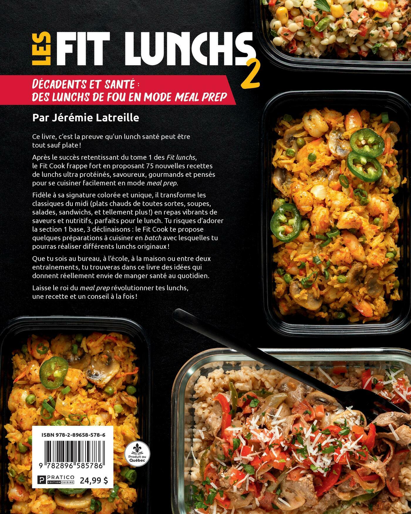 Ce livre, c’est la preuve qu’un lunch santé peut êtretout sauf plate !Après le succès retentissant du tome 1 des Fit lunchs,le Fit Cook frappe fort en proposant 75 nouvelles recettesde lunchs ultra protéinés, savoureux, gourmands et penséspour se cuisiner facilement en mode meal prep.Fidèle à sa signature colorée et unique, il transforme lesclassiques du midi (plats chauds de toutes sortes, soupes,salades, sandwichs, et tellement plus !) en repas vibrants desaveurs et nutritifs, parfaits pour le lunch. Tu risques d’adorerla section 1 base, 3 déclinaisons : le Fit Cook te proposequelques préparations à cuisiner en batch avec lesquelles tupourras réaliser différents lunchs originaux !Que tu sois au bureau, à l’école, à la maison ou entre deuxentraînements, tu trouveras dans ce livre des idées quidonnent réellement envie de manger santé au quotidien.Laisse le roi du meal prep révolutionner tes lunchs,une recette et un conseil à la fois !