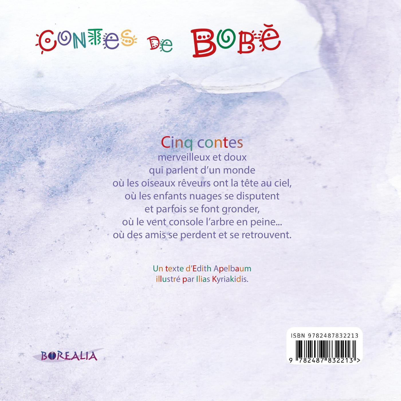 Cinq contes merveilleux et doux, qui parlent d’un monde où les oiseaux rêveurs ont la tête au ciel, où les enfants nuages se disputent et parfois se font gronder, où le vent console l’arbre en peine... où des amis se perdent et se retrouvent.Un texte d’Edith Apelbaum illustré par Ilias Kyriakidis.-Ces contes ont été inspirés à Edith Apelbaum par ses petites filles qui grandissaient loin d’elle. Pour leur raconter malgré tout des histoires, elle a tiré un fil imaginaire qui s’est ensuite chargé de nuages, d’oiseaux, d’arbres... et en toile de fond une petite fille pose à sa Bobé — « grand-mère » en yiddish — des questions difficiles.Tous les livres que l’auteure a lus et partagés au cours de sa vie de lectrice ont trouvé dans ce recueil de textes une forme pour elle inattendue, et joyeuse. Ilias Kyriakidis est un artiste plasticien athénien. Plus familier du trompe l’œil et bien que son animal fétiche soit le poisson, il a prêté sa sensibilité et ses pinceaux aux habitants du ciel. Sa capacité à rêver et son humour font merveille dans ces illustrations où dansent ensemble personnages et couleurs.