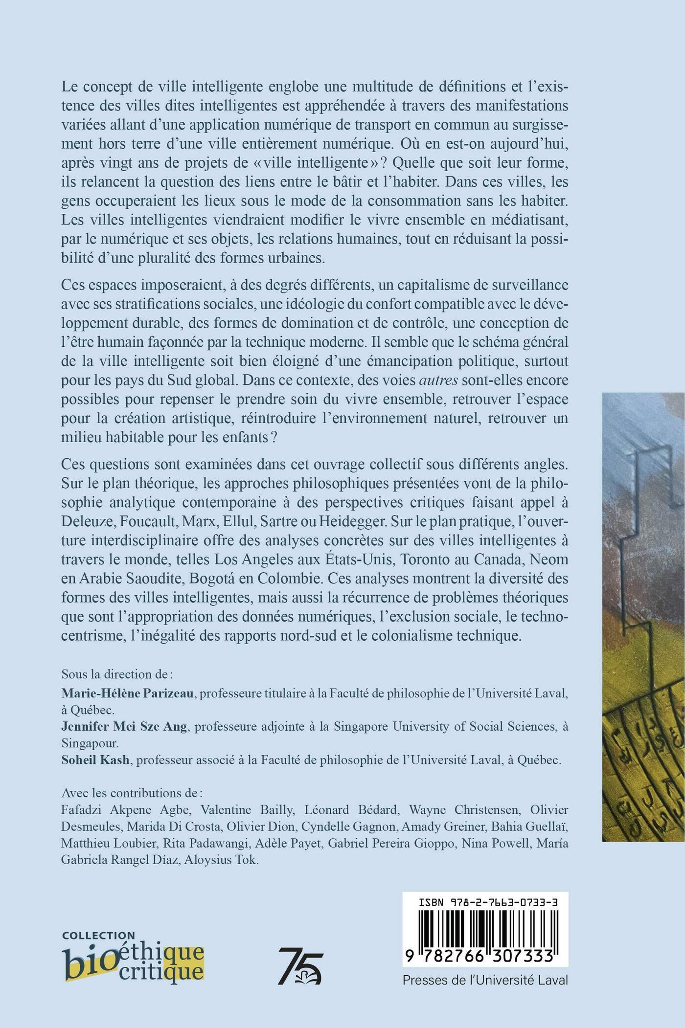 Ces questions sont examinées dans cet ouvrage collectif sous différents angles. Sur le plan théorique, les approches philosophiques présentées vont de la philosophie analytique contemporaine à des perspectives critiques faisant appel à Deleuze, Foucault, Marx, Ellul, Sartre ou Heidegger. Sur le plan pratique, l’ouverture interdisciplinaire offre des analyses concrètes sur des villes intelligentes à travers le monde, telles Los Angeles aux États-Unis, Toronto au Canada, Neom en Arabie Saoudite, Bogota en Colombie. Ces analyses montrent la diversité des formes des villes intelligentes, mais aussi la récurrence de problèmes théoriques que sont l’appropriation des données numériques, l’exclusion sociale, le technocentrisme, l’inégalité des rapports nord-sud et le colonialisme technique.