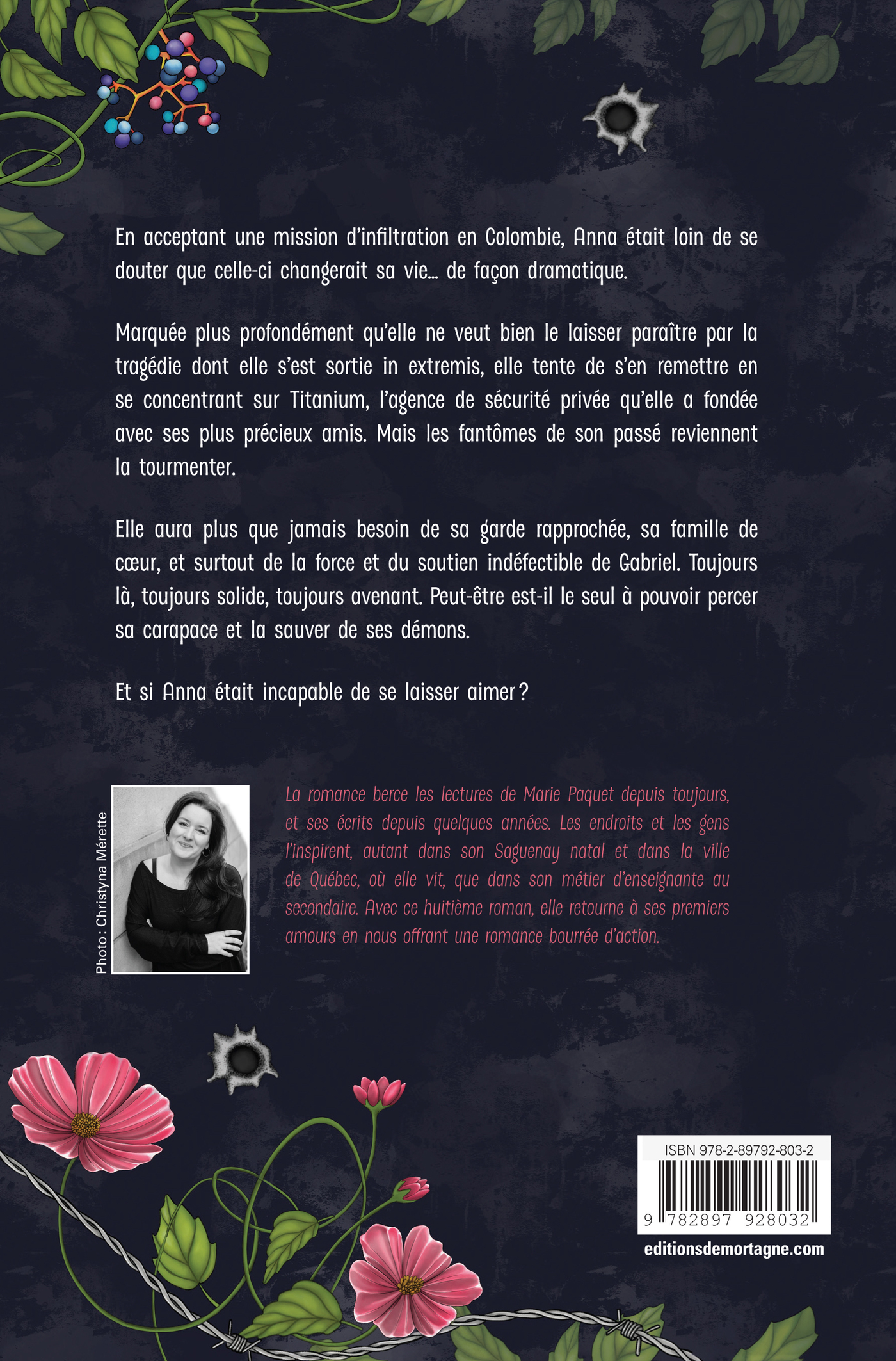 En acceptant une mission d’infiltration en Colombie, Anna était loin de se douter que celle-ci changerait sa vie… de façon dramatique.Marquée plus profondément qu’elle ne veut bien le laisser paraître par la tragédie dont elle s’est sortie in extremis, elle tente de s’en remettre en se concentrant sur Titanium, l’agence de sécurité privée qu’elle a fondée avec ses plus précieux amis. Mais les fantômes de son passé reviennent la tourmenter.Elle aura plus que jamais besoin de sa garde rapprochée, sa famille de cœur, et surtout de la force et du soutien indéfectible de Gabriel. Toujours là, toujours solide, toujours avenant. Peut-être est-il le seul à pouvoir percer sa carapace et la sauver de ses démons.Et si Anna était incapable de se laisser aimer ?