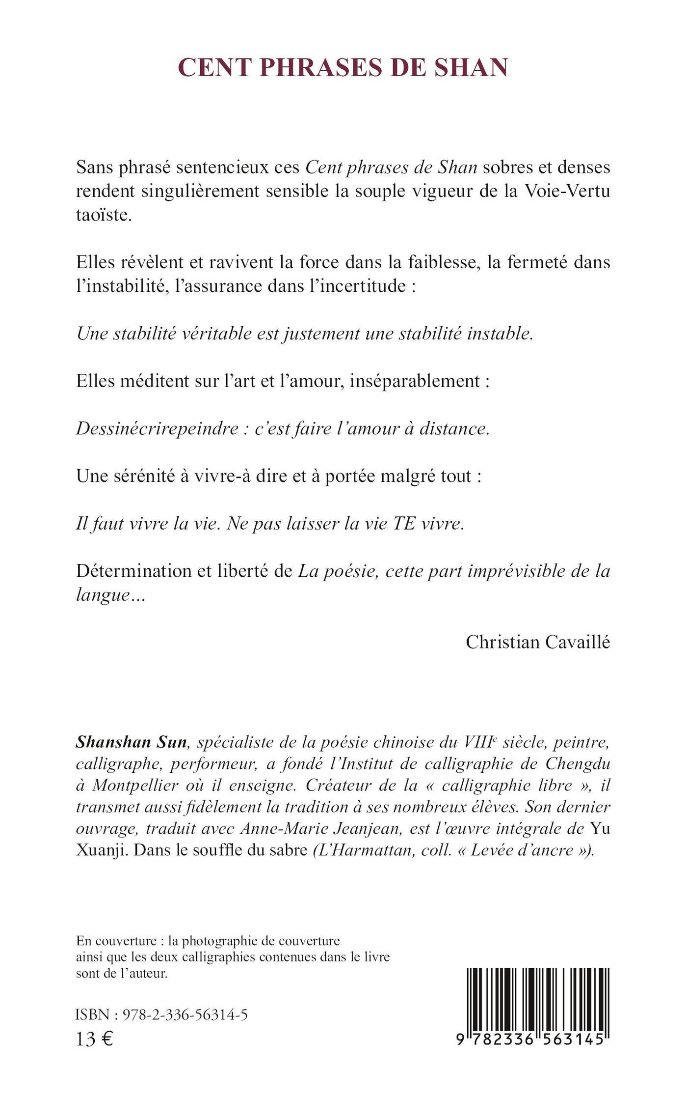 Sans phrasé sentencieux ces Cent phrases de Shan sobres et denses rendent singulièrement sensible la souple vigueur de la Voie-Vertu taoïste.