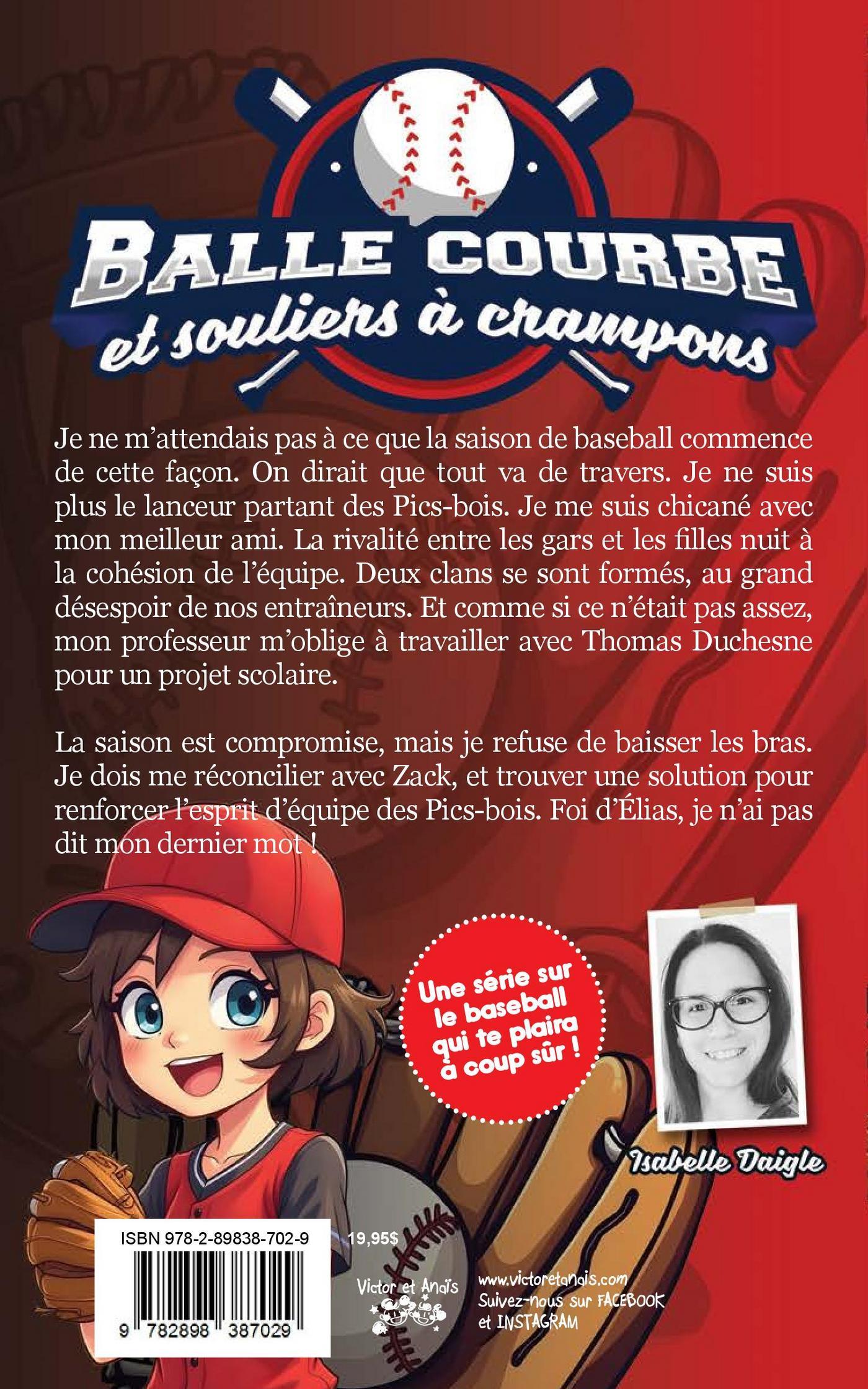 Je ne m’attendais pas à ce que la saison de baseball commence de cette façon. On dirait que tout va de travers. Je ne suis plus le lanceur partant des Pics-bois. Je me suis chicané avec mon meilleur ami. La rivalité entre les gars et les filles nuit à la cohésion de l’équipe. Deux clans se sont formés, au grand désespoir de nos entraîneurs. Et comme si ce n’était pas assez, mon professeur m’oblige à travailler avec Thomas Duchesne pour un projet scolaire. La saison est compromise, mais je refuse de baisser les bras. Je dois me réconcilier avec Zack, et trouver une solution pour renforcer l’esprit d’équipe des Pics-bois. Foi d’Élias, je n’ai pas dit mon dernier mot !