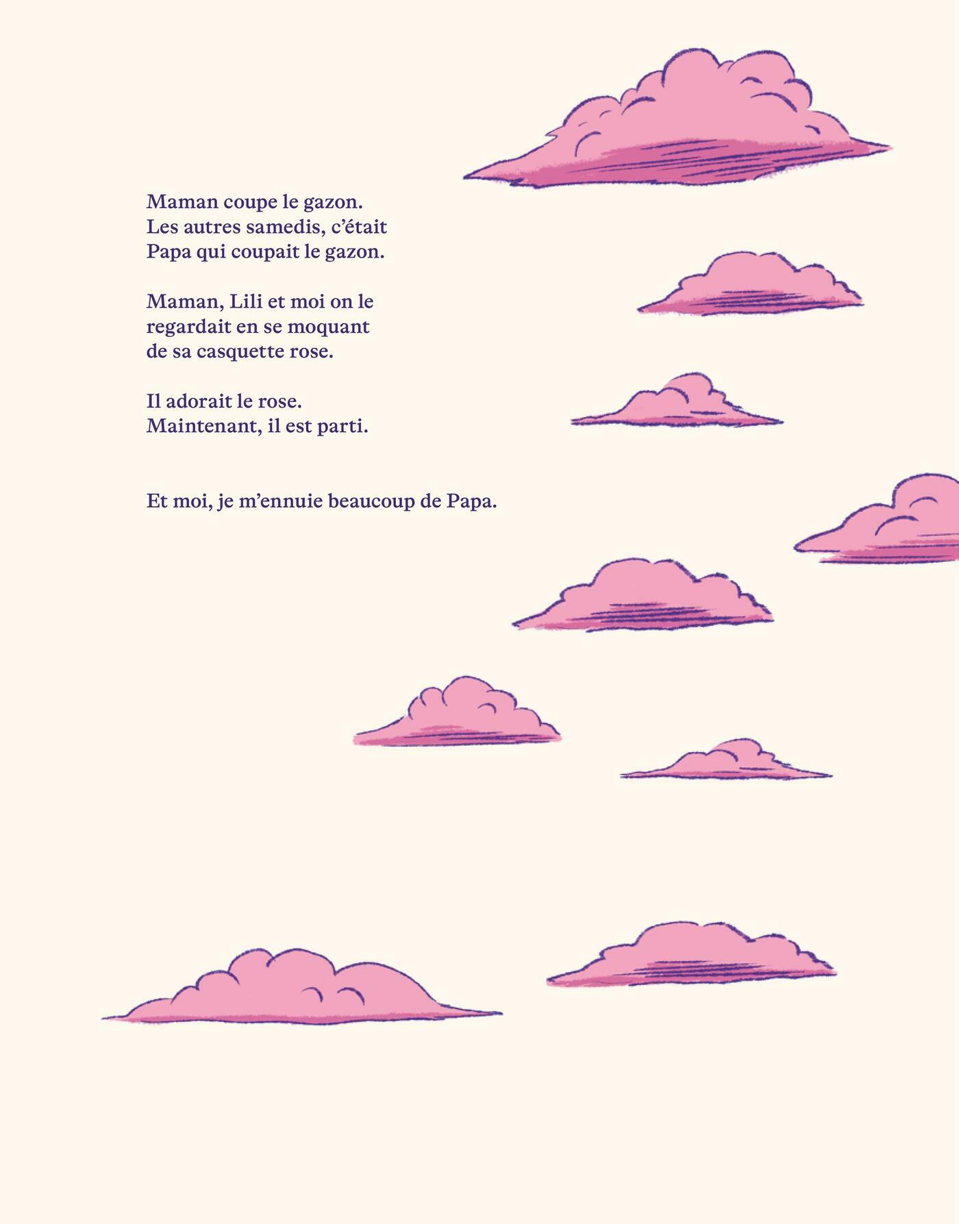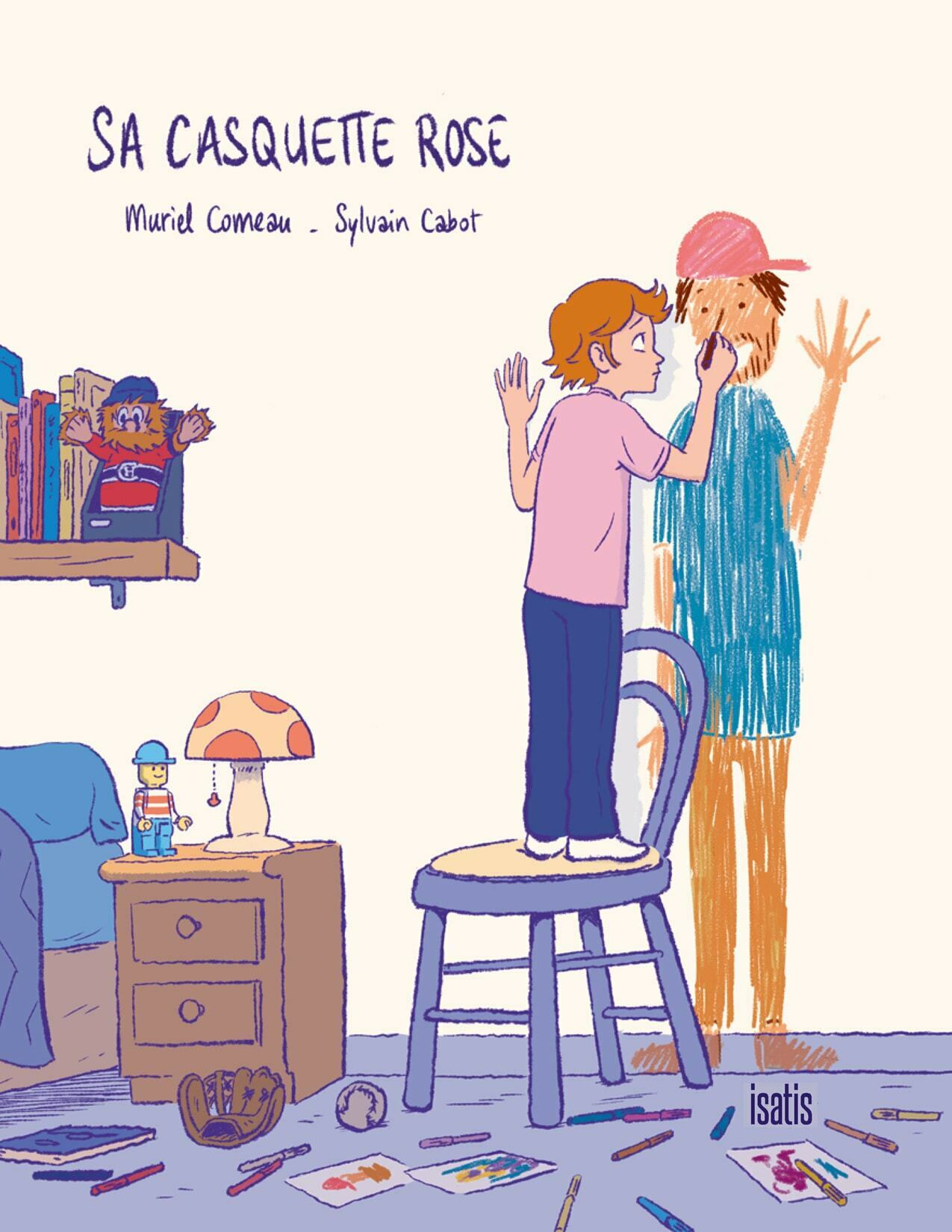 Un jeune garçon a perdu son père. Comment continuer le quotidien familial malgré cette absence insupportable ? « Ça va s’estomper » lui disent les adultes. Sans craindre de nommer les nombreuses larmes qui assaillent toute la famille, l’autrice met en scène le passage du temps qui aidera peu à peu notre héros à traverser ce deuil. Porter sa casquette rose, manger ses crêpes du dimanches chez les grands-parents, le dessiner en classe, sur les murs de sa chambre. Jouer au football avec ses oncles, partir en vacances, tomber amoureux et recommencer à sourire tranquillement à la vie. Un album tout en douceur, porté par les dessins d’une grande sensibilité de Sylvain Cabot.