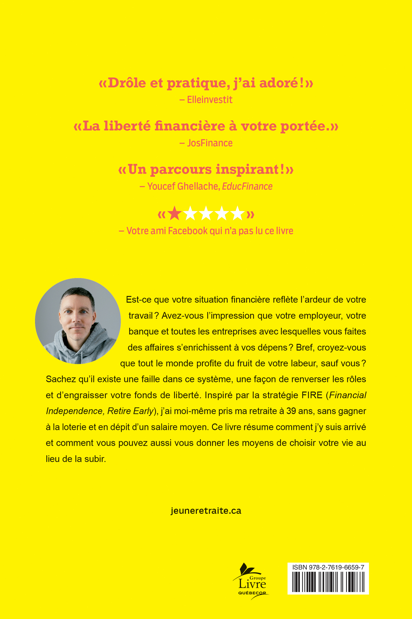 Est-ce que votre situation financière reflète l'ardeur de votre travail ? Avez-vous l'impression que votre employeur, votre banque et toutes les entreprises avec lesquelles vous faites des affaires s'enrichissent à vos dépens ? Bref, croyez-vous que tout le monde profite du fruit de votre labeur, sauf vous ? Sachez qu'il existe une faille dans ce système, une façon de renverser les rôles et d'engraisser votre fonds de liberté. Inspiré par la stratégie FIRE (Financial Independence, Retire Early), j'ai moi-même pris ma retraite à 39 ans, sans gagner à la loterie et en dépit d'un salaire moyen. Ce livre résume comment j'y suis arrivé et comment vous pouvez aussi vous donner les moyens de choisir votre vie au lieu de la subir.