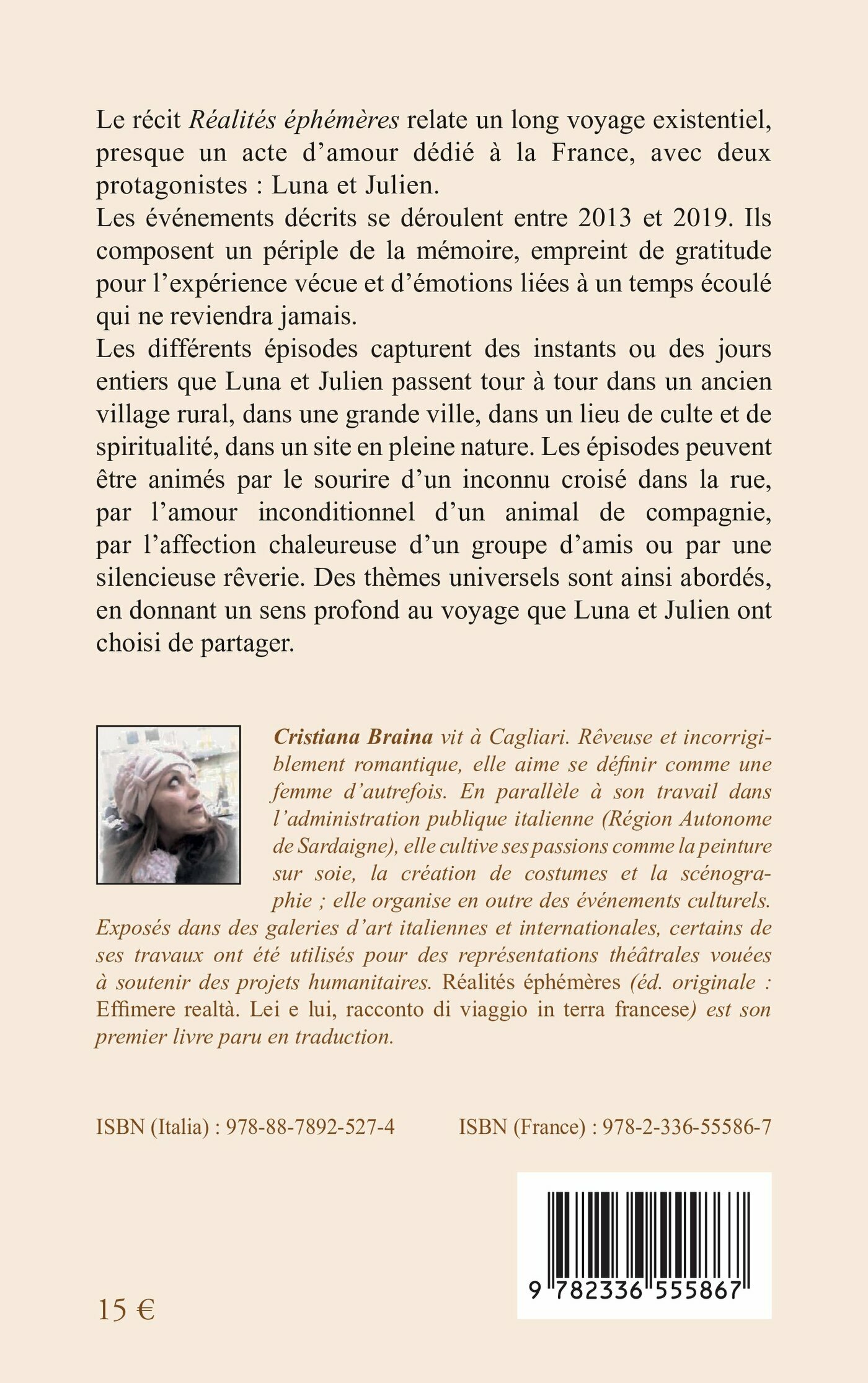 Le récit Réalités éphémères relate un long voyage existentiel, presque un acte d’amour dédié à la France, avec deux protagonistes : Luna et Julien.