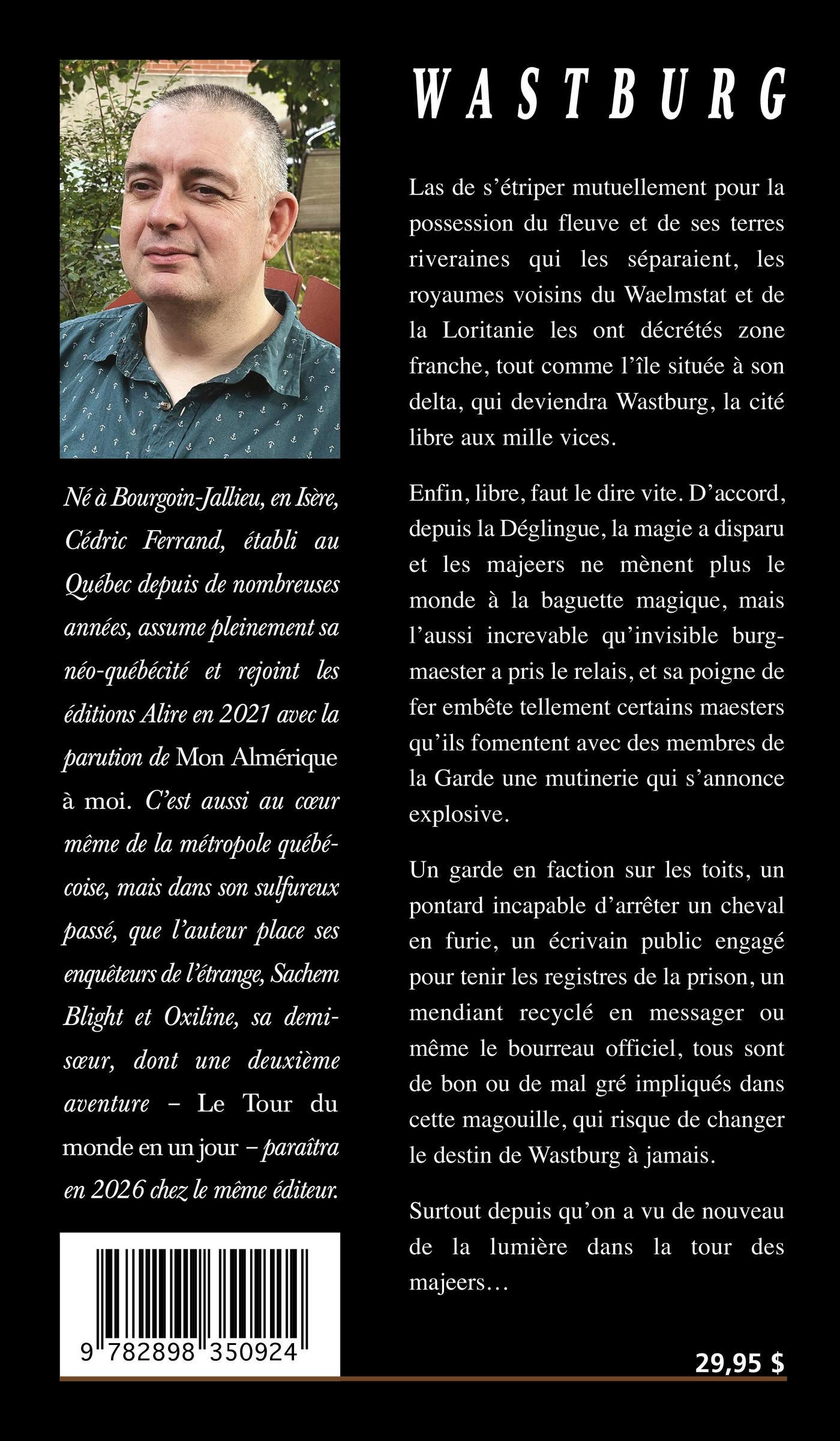 Las de s’étriper mutuellement pour la possession du fleuve et de ses terres riveraines qui les séparaient, les royaumes voisins du Waelmstat et de la Loritanie les ont décrétés zone franche, tout comme l’île située à son delta, qui deviendra Wastburg, la cité libre aux mille vices.Enfin, libre, faut le dire vite. D’accord, depuis la Déglingue, la magie a disparu et les majeers ne mènent plus le monde à la baguette magique, mais l’aussi increvable qu’invisible burgmaester a pris le relais, et sa poigne de fer embête tellement certains maesters qu’ils fomentent avec des membres de la Garde une mutinerie qui s’annonce explosive.Un garde en faction sur les toits, un pontard incapable d’arrêter un cheval en furie, un écrivain public engagé pour tenir les registres de la prison, un mendiant recyclé en messager ou même le bourreau officiel, tous sont de bon ou de mal gré impliqués dans cette magouille, qui risque de changer le destin de Wastburg à jamais.Surtout depuis qu’on a vu de nouveau de la lumière dans la tour des majeers…