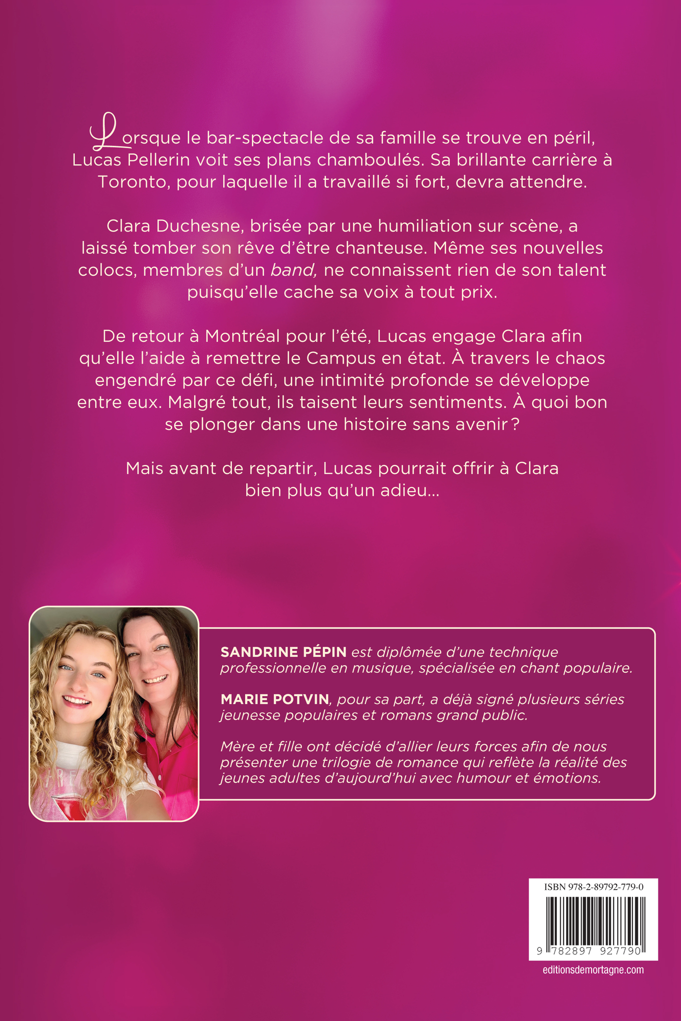 Lorsque le bar-spectacle de sa famille se trouve en péril, Lucas Pellerin voit ses plans chamboulés. Sa brillante carrière à Toronto, pour laquelle il a travaillé si fort, devra attendre.Clara Duchesne, brisée par une humiliation sur scène, a laissé tomber son rêve d’être chanteuse. Même ses nouvelles colocs, membres d’un band, ne connaissent rien de son talent puisqu’elle cache sa voix à tout prix.De retour à Montréal pour l’été, Lucas engage Clara afin qu’elle l’aide à remettre le Campus en état. À travers le chaos engendré par ce défi, une intimité profonde se développe entre eux. Malgré tout, ils taisent leurs sentiments. À quoi bon se plonger dans une histoire sans avenir ?Mais avant de repartir, Lucas pourrait offrir à Clara bien plus qu’un adieu…
