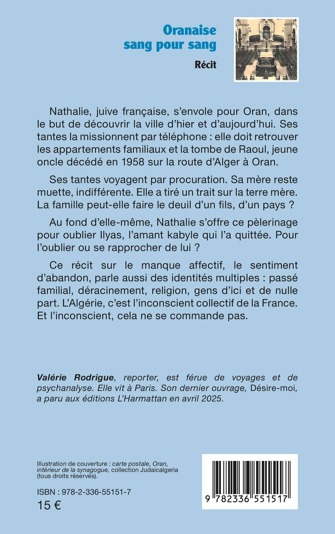 Nathalie, juive française, s’envole pour Oran, dans le but de découvrir la ville d’hier et d’aujourd’hui. Ses tantes la missionnent par téléphone : elle doit retrouver les appartements familiaux et la tombe de Raoul, jeune oncle décédé en 1958 sur la route d’Alger à Oran.