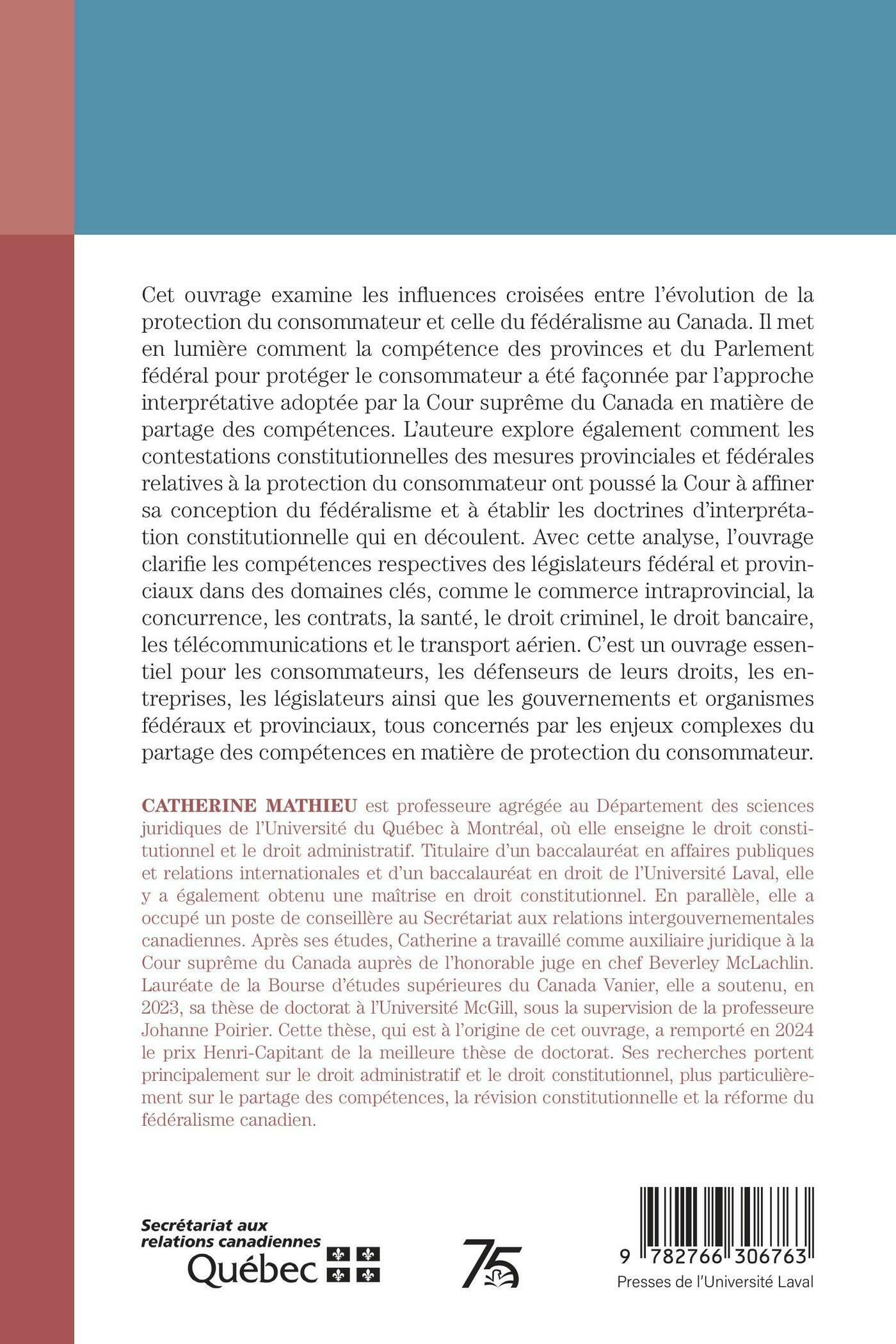 Cet ouvrage examine les influences croisées entre l’évolution de la protection du consommateur et celle du fédéralisme au Canada. Il met en lumière comment la compétence des provinces et du Parlement fédéral pour protéger le consommateur a été façonnée par l’approche interprétative adoptée par la Cour suprême du Canada en matière de partage des compétences. L’auteure explore également comment les contestations constitutionnelles des mesures provinciales et fédérales relatives à la protection du consommateur ont poussé la Cour à affiner sa conception du fédéralisme et à établir les doctrines d’interprétation constitutionnelle qui en découlent. Avec cette analyse, l’ouvrage clarifie les compétences respectives des législateurs fédéral et provinciaux dans des domaines clés, comme le commerce intraprovincial, la concurrence, les contrats, la santé, le droit criminel, le droit bancaire, les télécommunications et le transport aérien. C’est un ouvrage essentiel pour les consommateurs, les défenseurs de leurs droits, les entreprises, les législateurs ainsi que les gouvernements et organismes fédéraux et provinciaux, tous concernés par les enjeux complexes du partage des compétences en matière de protection du consommateur.