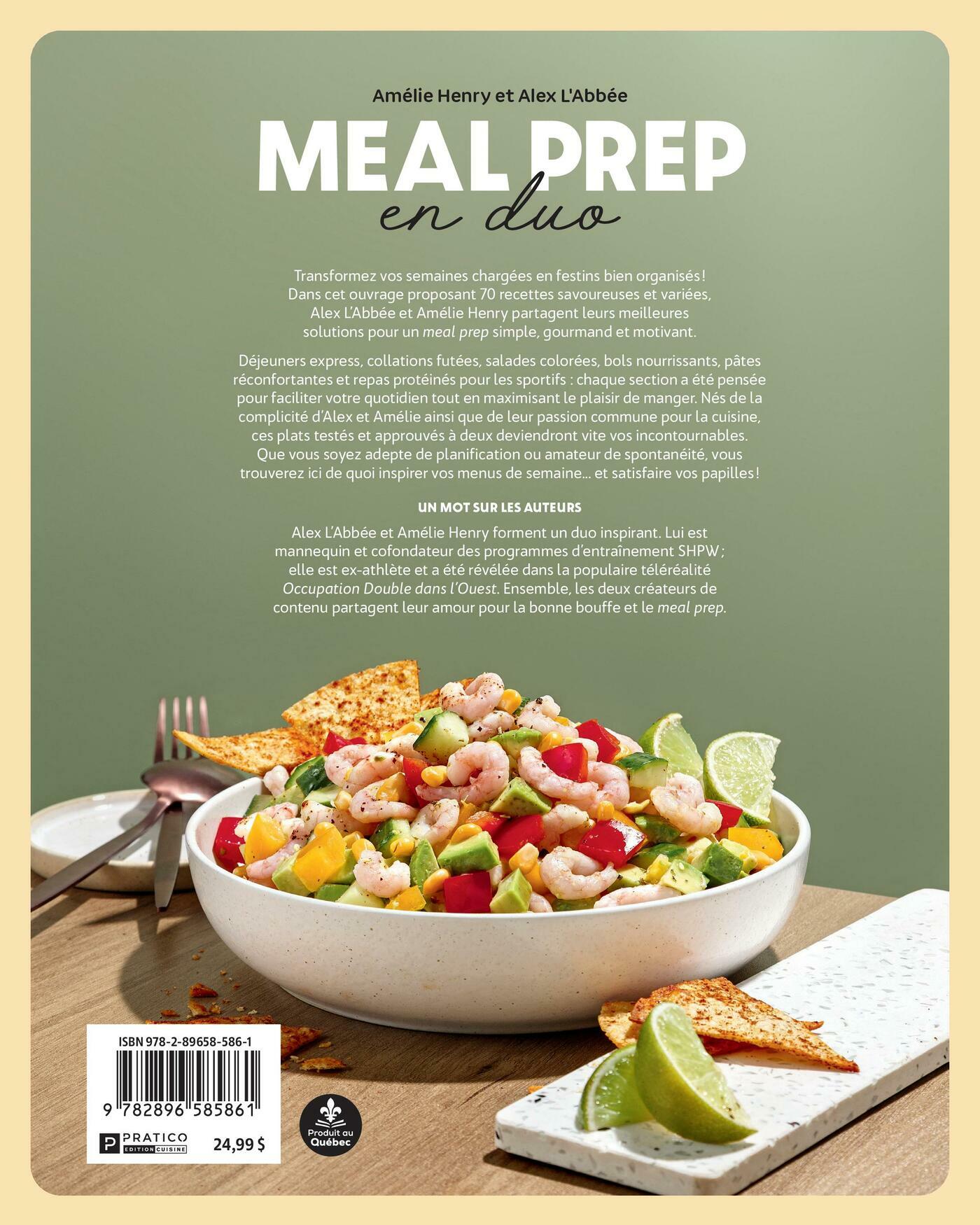 Transformez vos semaines chargées en festins bien organisés ! Dans cet ouvrage proposant 70 recettes savoureuses et variées, Alex L’Abbée et Amélie Henry partagent leurs meilleures solutions pour un meal prep simple, gourmand et motivant.Déjeuners express, collations futées, salades colorées, bols nourrissants, pâtes réconfortantes et repas protéinés pour les sportifs : chaque section a été pensée pour faciliter votre quotidien tout en maximisant le plaisir de manger. Nés de la complicité d’Alex et Amélie ainsi que de leur passion commune pour la cuisine, ces plats testés et approuvés à deux deviendront vite vos incontournables. Que vous soyez adepte de planification ou amateur de spontanéité, vous trouverez ici de quoi inspirer vos menus de semaine... et satisfaire vos papilles !