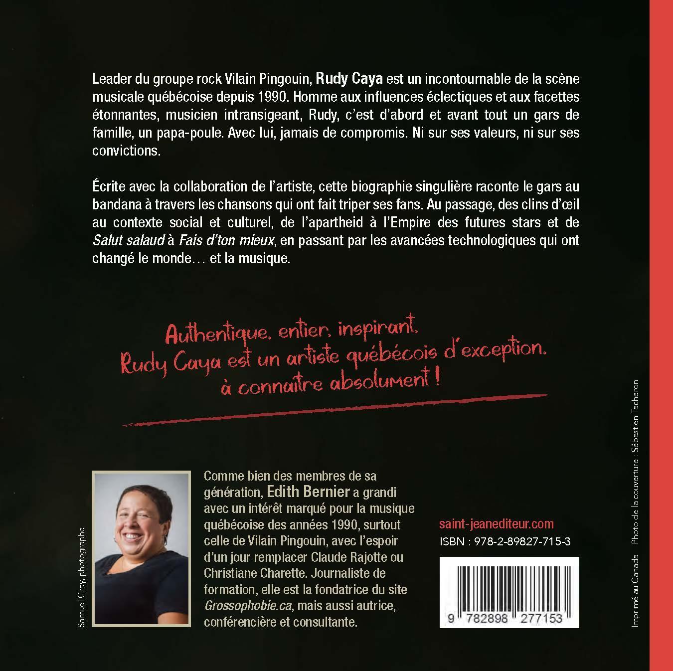 Leader du groupe rock Vilain Pingouin, Rudy Caya est un incontournable de la scène musicale québécoise depuis 1990. Homme aux influences éclectiques et aux facettes étonnantes, musicien intransigeant, Rudy, c’est d’abord et avant tout un gars de famille, un papa-poule. Avec lui, jamais de compromis. Ni sur ses valeurs, ni sur ses convictions. Écrite avec la collaboration de l’artiste, cette biographie singulière raconte le gars au bandana à travers les chansons qui ont fait triper ses fans. Au passage, des clins d’œil au contexte social et culturel, de l’apartheid à l’Empire des futures stars et de Salut salaud à Fais d’ton mieux, en passant par les avancées technologiques qui ont changé le monde… et la musique.Authentique, entier, inspirant, Rudy Caya est un artiste québécois d’exception, à connaître absolument !