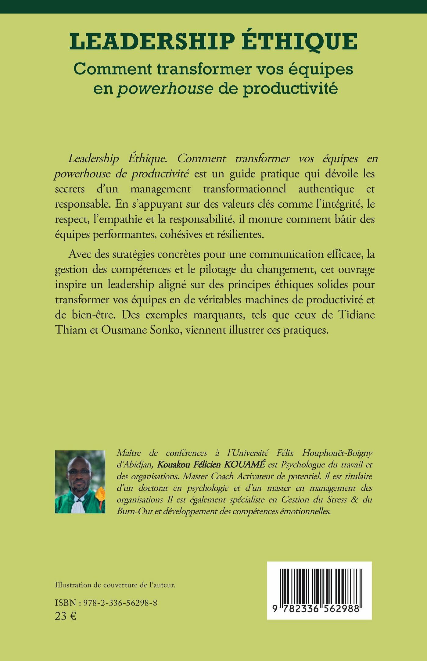 Avec des stratégies concrètes pour une communication efficace, la gestion des compétences et le pilotage du changement, cet ouvrage inspire un leadership aligné sur des principes éthiques solides pour transformer vos équipes en de véritables machines de productivité et de bien-être. Des exemples marquants, tels que ceux de Tidiane Thiam et Ousmane Sonko, viennent illustrer ces pratiques.