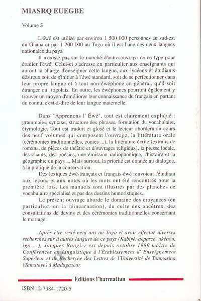 Il n'existe pas sur le marché d'autre ouvrage de ce type pour étudier l'éwé. Celui-ci s'adresse en particulier aux enseignants qui auront la charge d'enseigner cette langue, aux lycéens et étudiants désireux soit de s'initier à l'éwé standard, soit de se perfectionner dans leur propre langue et à tout non-éwéphone en général, qu'il soit étranger ou togolais. En outre, les éwéphones pourront également y trouver un moyen d'améliorer leur connaissance du français en partant du connu, c'est-à-dire de leur langue maternelle.