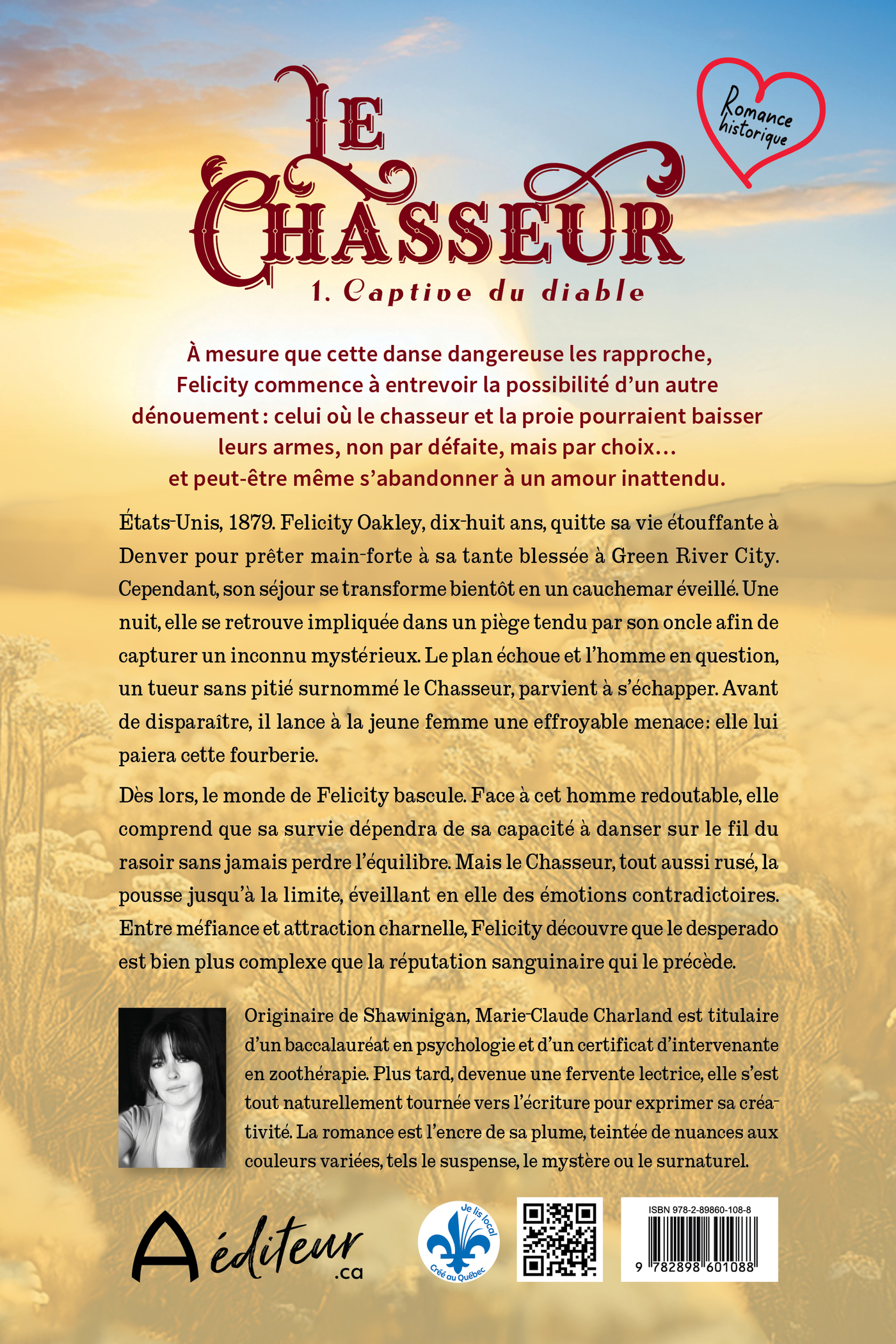 À mesure que cette danse dangereuse les rapproche, Felicity commence à entrevoir la possibilité dʼun autre dénouement : celui où le chasseur et la proie pourraient baisser leurs armes, non par défaite, mais par choix… et peut-être même s’abandonner à un amour inattendu. États-Unis, 1879. Felicity Oakley, dix-huit ans, quitte sa vie étouffante à Denver pour prêter main-forte à sa tante blessée à Green River City. Cependant, son séjour se transforme bientôt en un cauchemar éveillé. Une nuit, elle se retrouve impliquée dans un piège tendu par son oncle afin de capturer un inconnu mystérieux. Le plan échoue et un tueur sans pitié surnommé le Chasseur, parvient à s’échapper.
