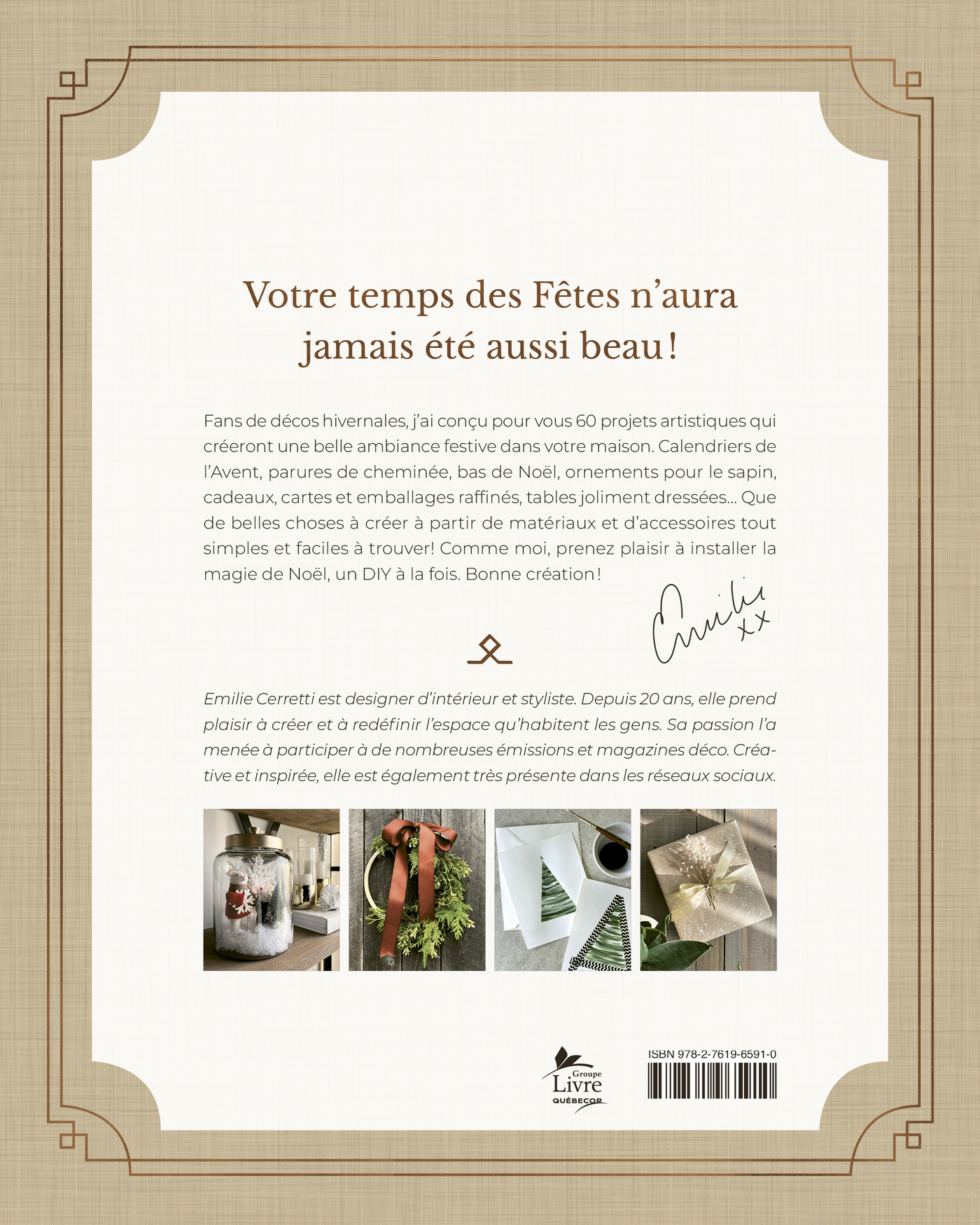 Fans de décos hivernales, j'ai conçu pour vous 60 projets artistiques qui créeront une belle ambiance festive dans votre maison. Calendriers de l'Avent, parures de cheminée, bas de Noël, ornements pour le sapin, cadeaux, cartes et emballages raffinés, tables joliment dressées... Que de belles choses à créer à partir de matériaux et d'accessoires tout simples et faciles à trouver! Comme moi, prenez plaisir à installer la magie de Noël, un DIY à la fois. Bonne création!
