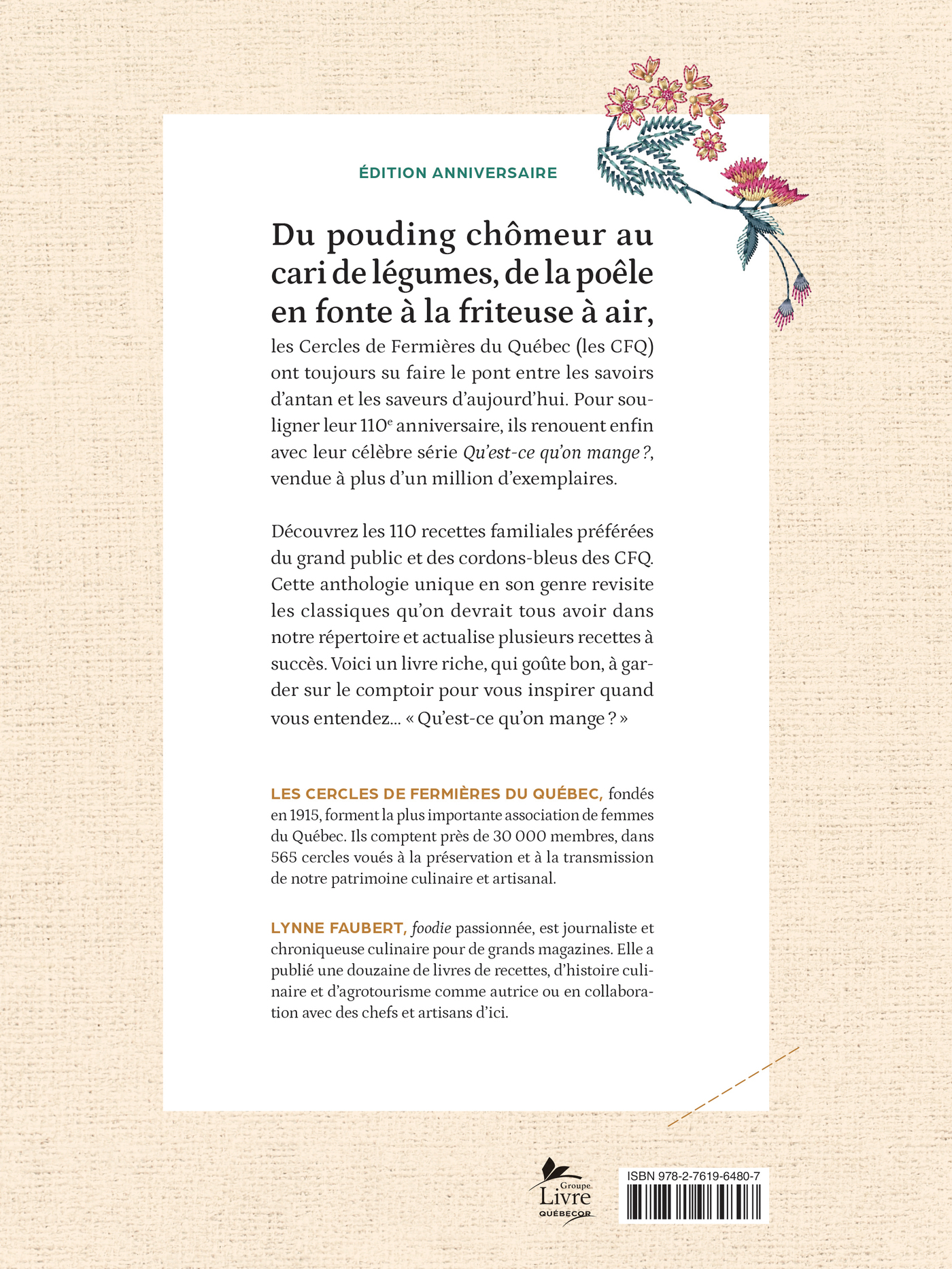 Du pouding chômeur au cari de légumes, de la poêle en fonte à la friteuse à air, les Cercles de Fermières du Québec (les CFQ) ont toujours su faire le pont entre les savoirs d'antan et les saveurs d'aujourd'hui. Pour souligner leur 110e anniversaire, ils renouent enfin avec leur célèbre série Qu'est-ce qu'on mange?, vendue à plus d'un million d'exemplaires.