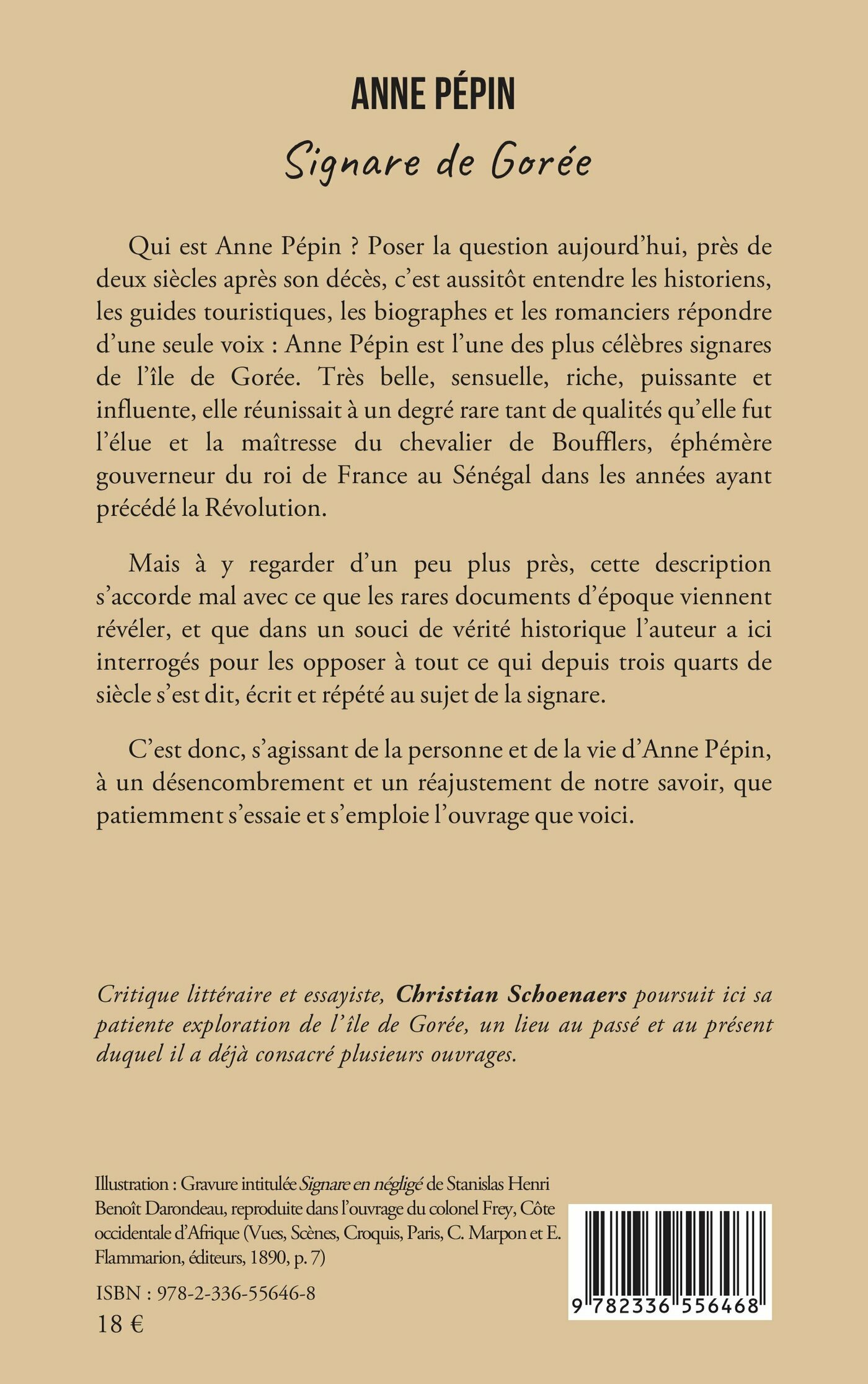 Qui est Anne Pépin ? Poser la question aujourd’hui, près de deux siècles après son décès, c’est aussitôt entendre les historiens, les guides touristiques, les biographes et les romanciers répondre d’une seule voix : Anne Pépin est l’une des plus célèbres signares de l’île de Gorée. Très belle, sensuelle, riche, puissante et influente, elle réunissait à un degré rare tant de qualités qu’elle fut l’élue et la maîtresse du chevalier de Boufflers, éphémère gouverneur du roi de France au Sénégal dans les années ayant précédé la Révolution.